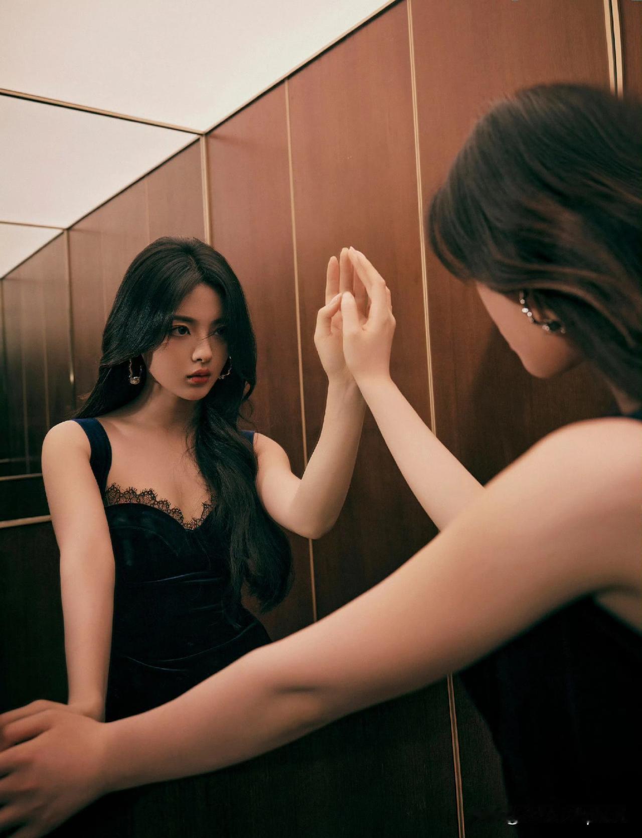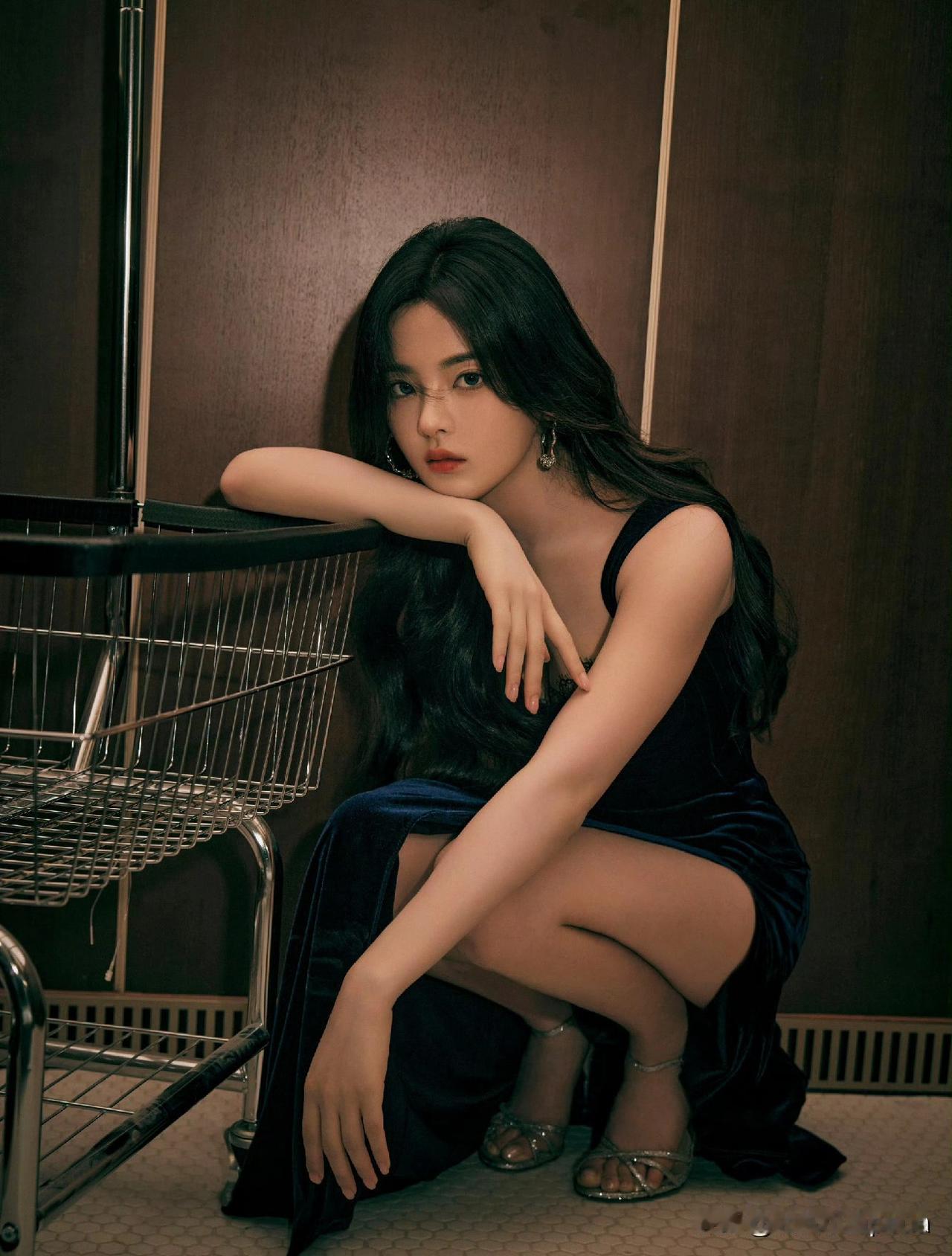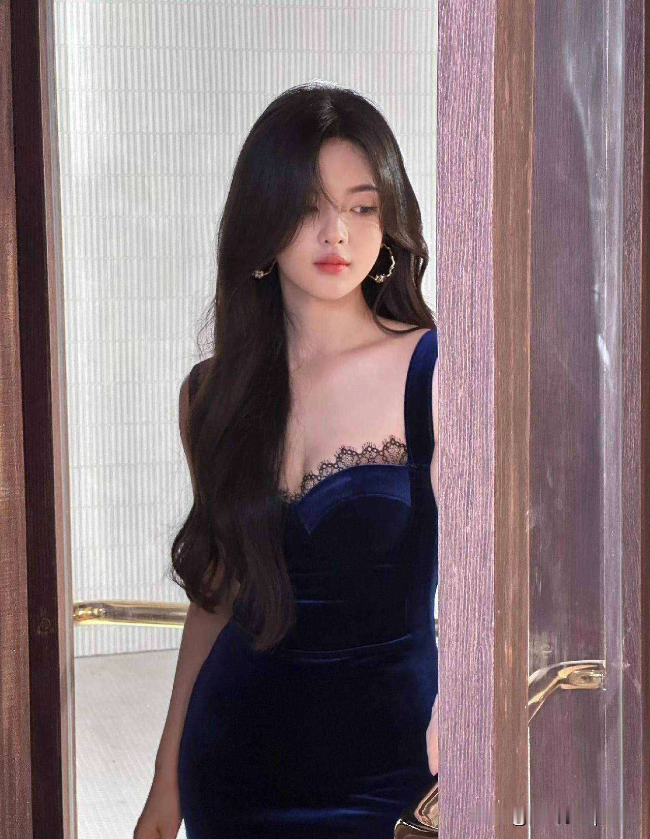 杨超越这身宝蓝色丝绒礼服真是绝了! 大领口把锁骨线条衬得超精致,高开叉设计让大长腿若隐若现,这身材比例也太逆天了。 丝绒材质自带高级感,配上浓密黑波浪卷发和存在感十足的大耳环,整个人都在发光。 她真是越来越能驾驭这种明艳风格,像从复古画报里走出来的港风女郎,又带着点灵动俏皮。 这造型师该加鸡腿![送心][送心]