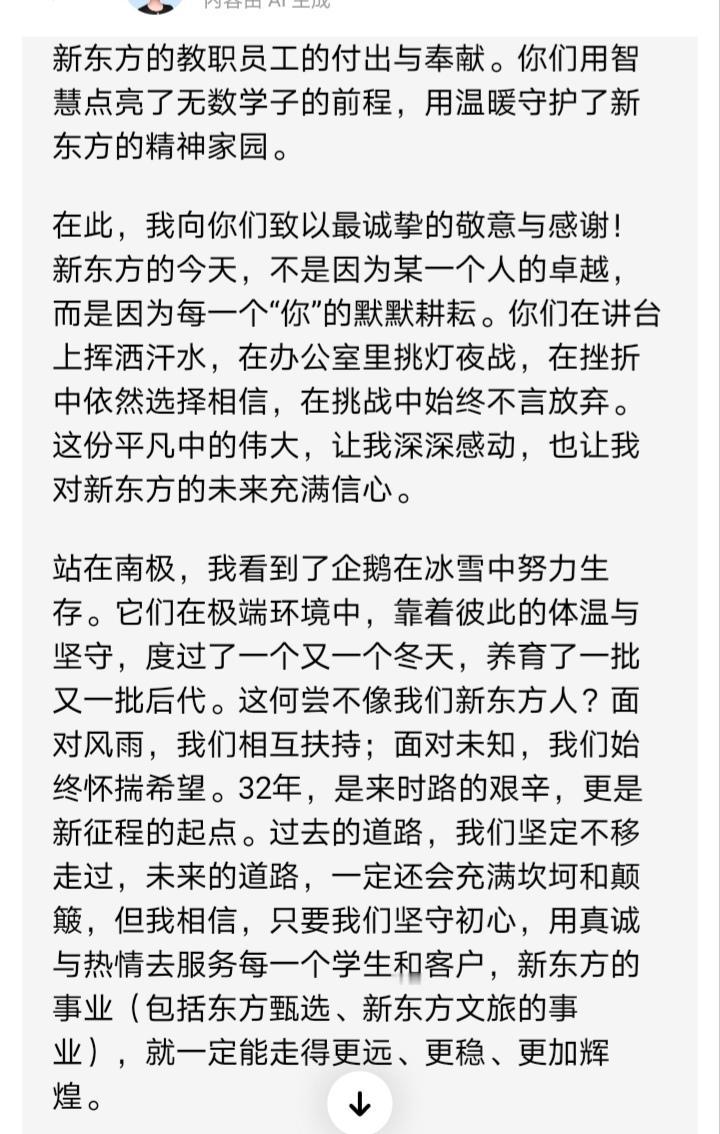 俞敏洪这场骂挨的不冤,这不给自己找罪受。就现在的舆论环境,大佬就不适合出来讲话,你赚钱旅游就得了。之前还原以为是新东方创立30周年纪念日,没想到是32周年纪念日。32周年,又不是整十周年。这时候你跑出来得瑟,那你不找骂吗?就像我们农村过大寿一样的,60,70岁才办酒席嘛,过整十周岁才办酒席。你平时的61,62岁,你办酒席那别人不得骂你啊。看了一下它原文,其实它原文如果放在新东方30周年或者40周年讲这样的话,一点毛病都没有。毕竟如果是整十周年纪念日的话,作为创始人出来讲一下话,流程走一下嘛,大家也可以理解,但你现在讲就显得有点得瑟,这时候不骂你骂谁?现在员工心态也太差了,老板发文鼓励一下,你这就受不了了。你就当老板也就走个流程,说到底还是员工想太多了?这种事情就像以前学校周一升旗仪式校领导讲话一样的,领导当流程,学生也当个流程嘛,大家都不会当回事。这种事就反正就是老板该旅游旅游,该发朋友圈就发朋友圈,员工该工作工作就完了。俞敏洪 俞敏洪商业模式 老罗俞敏洪 俞敏洪个人品牌 俞敏洪开箱 俞敏洪简史