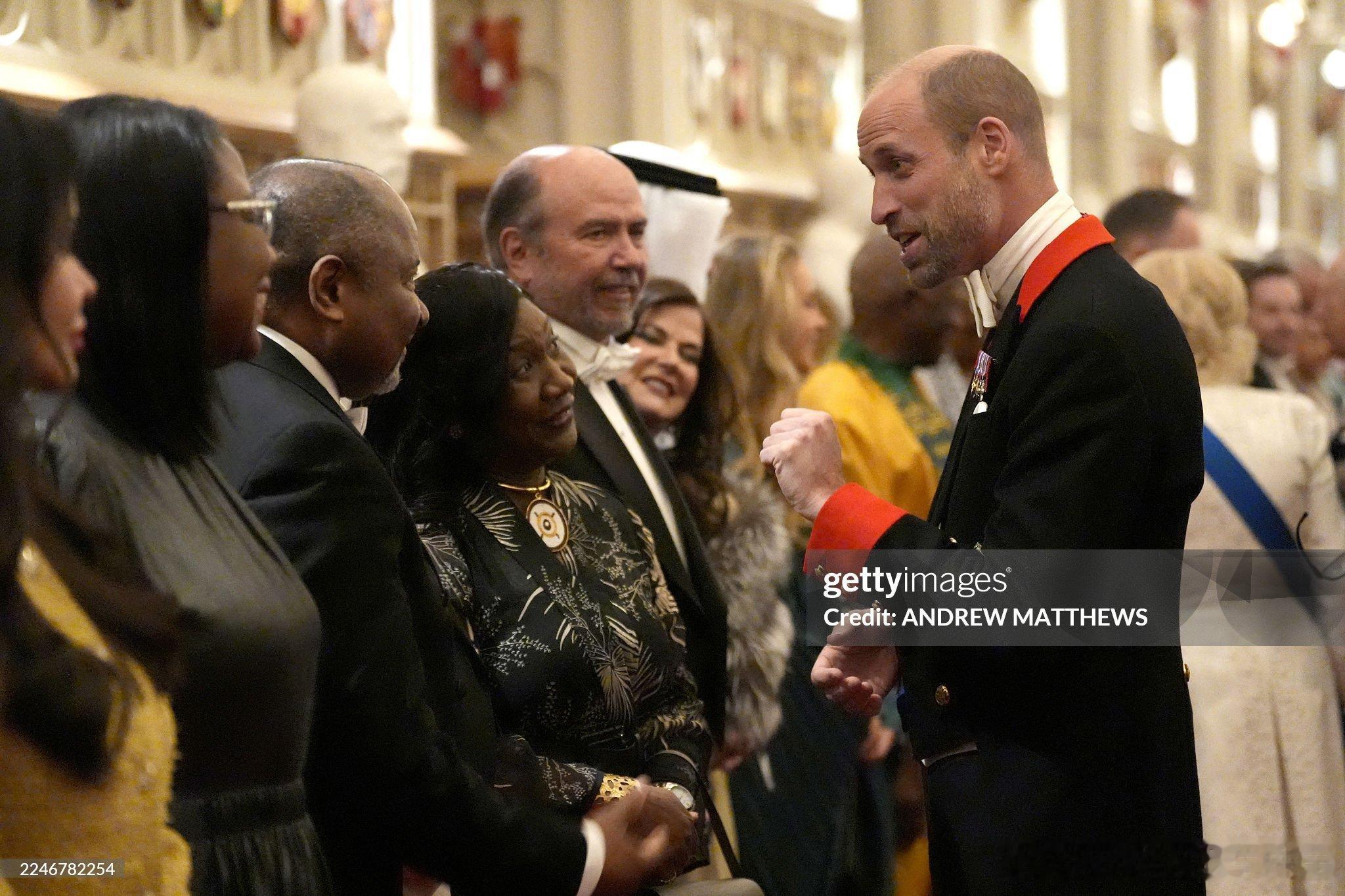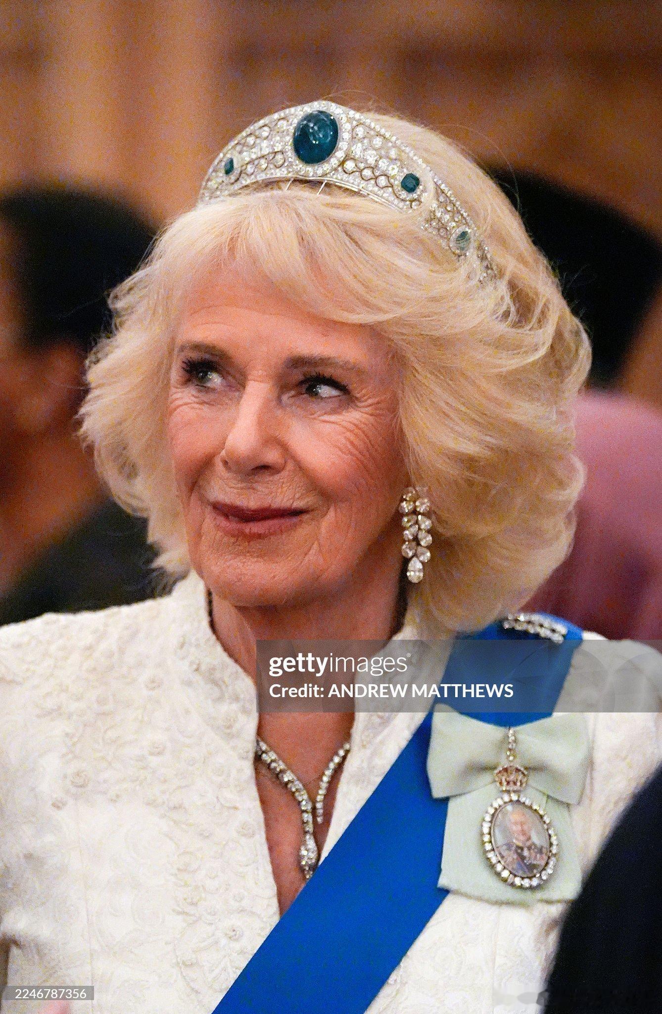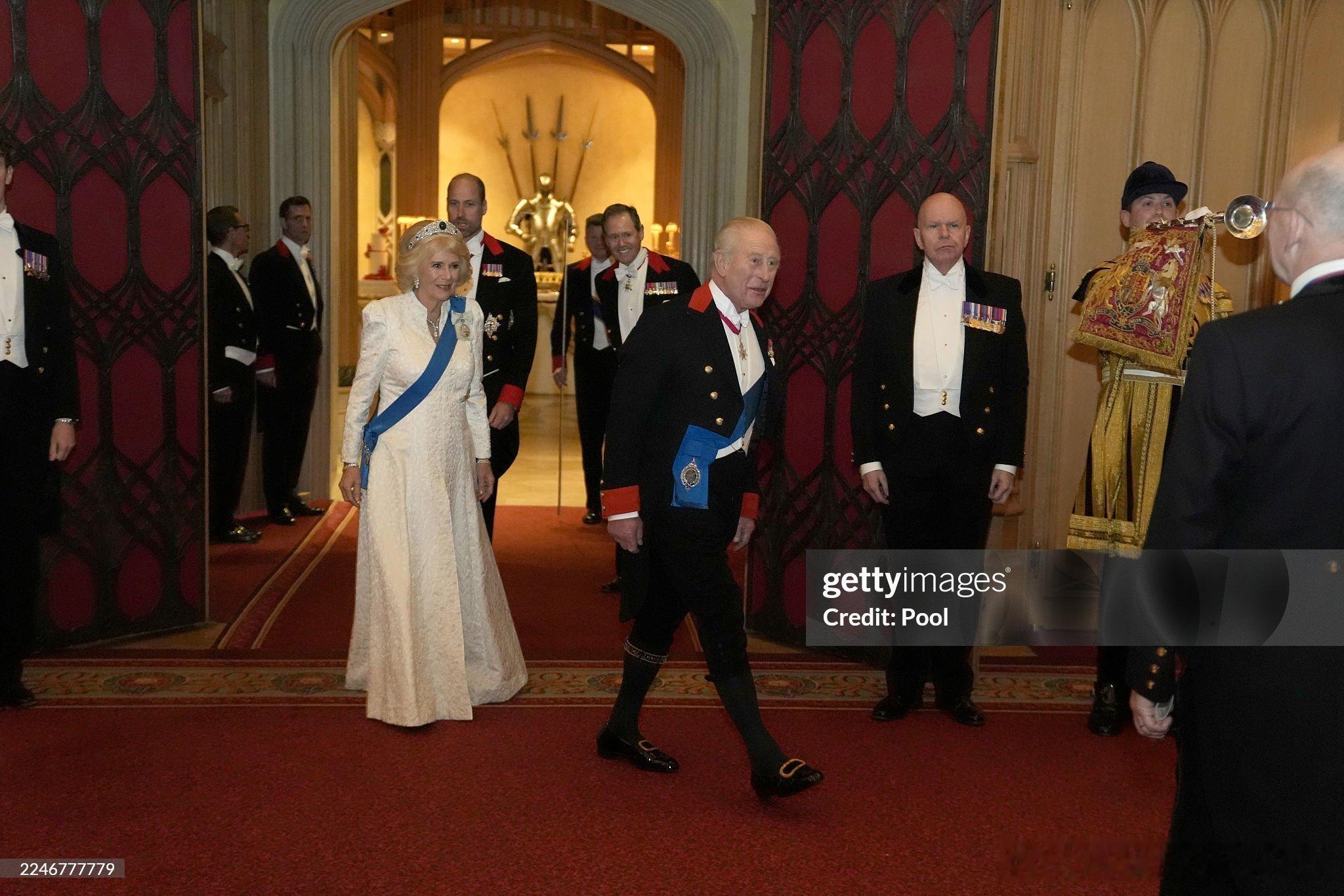 2025.11.18 英国国王夫妇和威尔士亲王在温莎城堡出席一年一度的外交接待会,卡米拉新解锁格维利祖母绿王冠,活久见呐,时隔七年重出江湖(戴的不好看是人的问题,不是珠宝的问题)。