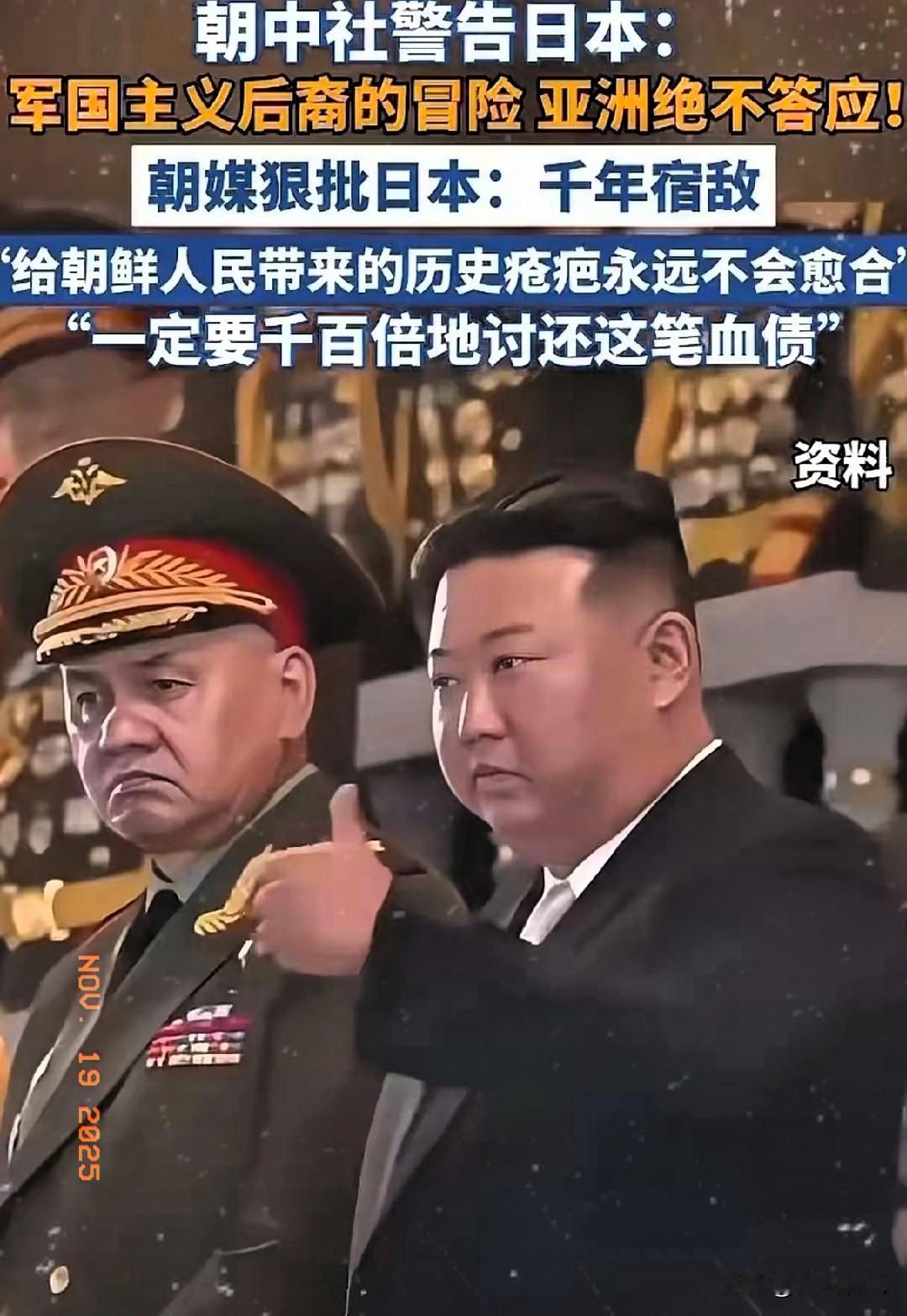 朝鲜,对日本, 他们是真上啊! 朝鲜中央社发文称:“千年宿敌日本给朝鲜人民造成的历史创伤,永远无法弥合,这笔血债必须千百倍地讨还。亚洲绝不容许日本军国主义后裔的军事冒险行径!” 明眼人都能看出,朝鲜这番强硬表态绝非空穴来风,而是日本近期一系列危险操作逼出来的,特别是高氏发布干涉台海言论后。 2025年以来,日本在军国主义复活的路上越跑越远,刚敲定的2025财年防卫预算高达8.7万亿日元,连续13年大幅增加,还计划提前实现防卫费占GDP2%的目标。 更让人警惕的是,日方居然要恢复“大佐”这类旧日军军阶用语,这无疑是在往曾遭其侵略的国家人民伤口上撒盐。 日本首相高市早苗上台后,态度比前任更激进,不仅要修改防卫装备出口限制,还图谋研发核动力潜艇,一步步撕毁“专守防卫”的承诺。 要知道,日本是全球唯一一个不完全承认二战结果的国家,这些年一边歪曲历史、美化侵略,一边疯狂扩军备战,本质就是想摆脱战后秩序束缚,成为能随意动武的“军事大国”。 俄方早就提醒过国际社会警惕日本的危险动向,中方发言人也明确表态,绝不允许军国主义卷土重来。 朝鲜人民对殖民统治时期的苦难刻骨铭心,对日本的军事野心自然最敏感。 从逐年膨胀的防卫预算,到不断放宽的武器出口政策,再到对历史的刻意遗忘,日本的每一步都在加剧地区紧张。 历史的血债不能一笔勾销,和平的底线更不容触碰。 日本要是真敢无视亚洲各国人民的警告,执意搞军事冒险,最终只会重蹈覆辙。 朝鲜的发声,我认为不仅是为自己民族讨公道,更是在提醒整个亚洲:忘记历史就意味着背叛,纵容军国主义复活,就是给地区和平埋下定时炸弹。这笔账,亚洲人民都记着,谁也别想蒙混过关。朝鲜冲突 朝鲜半岛 韩国朝鲜矛盾 南北朝鲜关系 日本输给朝鲜
