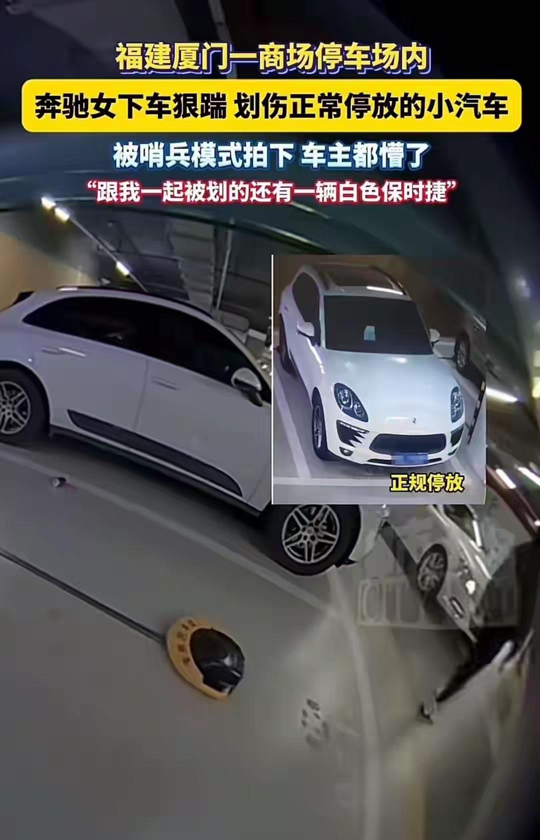 “新车秒变花脸!”厦门商场地库,奔驰女十几次倒库失败,竟踹门划车给邻车“纹花臂”;起因停车受挫,经过钥匙泄愤,结果哨兵模式全录、两维修费两万、警方立案;网友:技术差可以练,人品差没法救。 商场午间车位紧张,女子绕圈后找到空位,因多次倒车不进,车身斜堵入口,随后下车踹凹黑车驾驶门与保时捷副驾驶门。 监控显示,她掏出钥匙沿黑车侧腰从头划到尾,反手再划保时捷,全程动作连贯,抬头见无摄像头标识后更加大胆,却正被哨兵模式拍下正脸。 受损车主返回发现划痕与凹陷,立即共同报警,4S店定损黑车8000元、保时捷12000元,合计两万元,已达刑事立案标准。 女子到案后称“倒不进去太烦”才冲动,车主王先生明确拒绝和解,警方以涉嫌故意毁坏公私财物罪继续侦办,律师提醒:情绪失控也要承担刑责与赔偿。 对于这件事情,大家有什么看法?