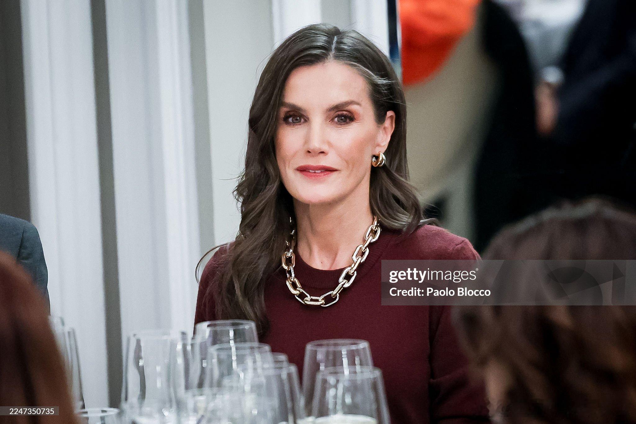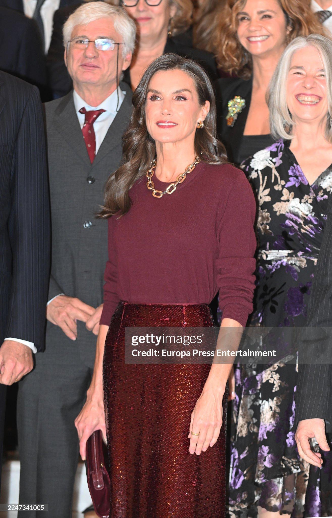 2025.11.18 西班牙国王夫妇出席“Francisco Cerecedo”新闻奖颁奖典礼,小莱的酒红色上衣和闪片半裙来自Falconeri和Massimo dutti,我个人心中的今年小莱最佳造型(项链和耳环是装饰品)。