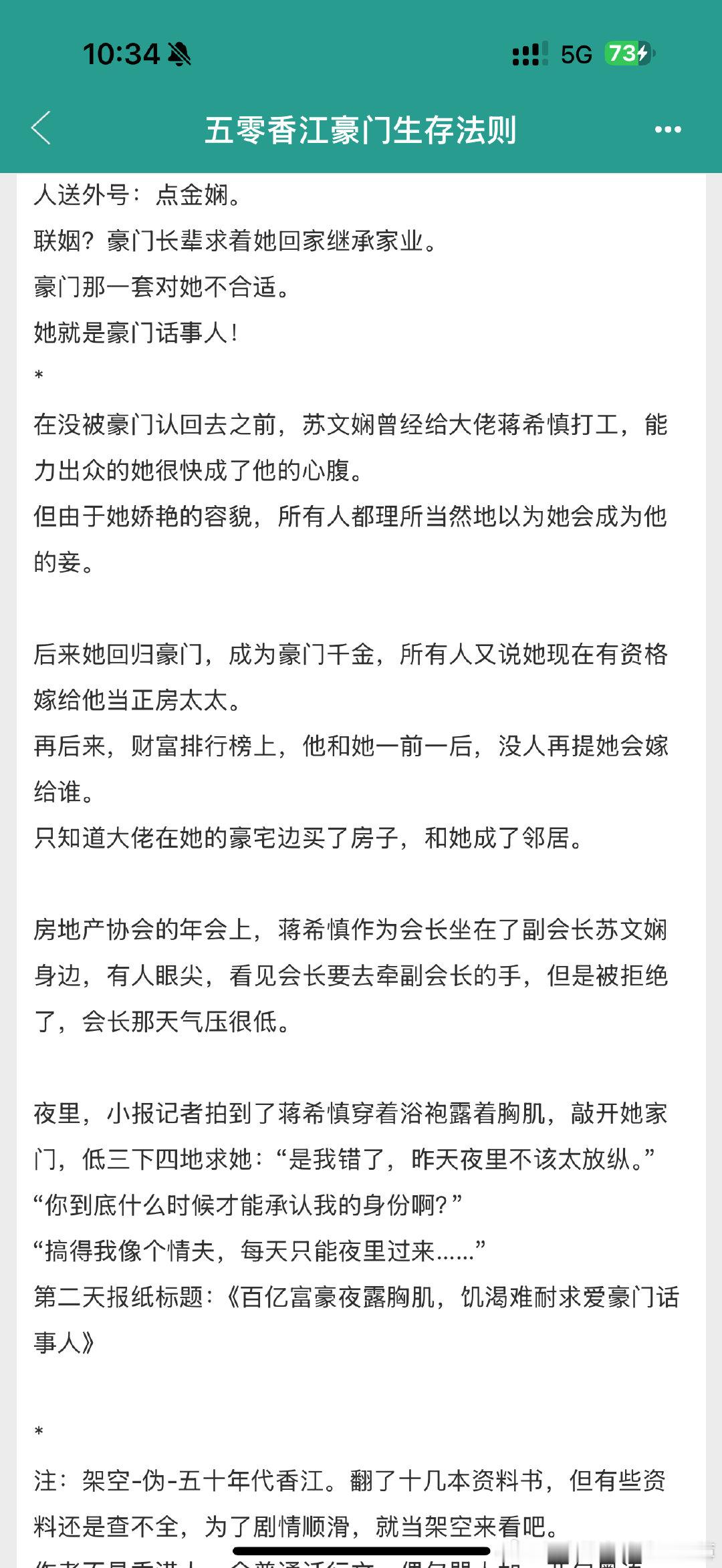 《五零香江豪门生存法则》作者:老衲吃素,BG,这本的女主创业史写得够爽,金手指也不算开太大。但是逻辑什么的确实有点差,女主一会儿要自由一会儿要家业,一会儿对男主心动一会儿又为了继承家业对自己奶奶承诺终身不嫁,就是前后不像一个人。而且女主继承家业明明是名正言顺,家业也被家里人败了大半,全家都指望女主救命力挽狂澜,就这种顺风局女主也能被拿捏……实在不符合人设。还有女主亲妈,小时候把她换走后面就那么轻易原谅……