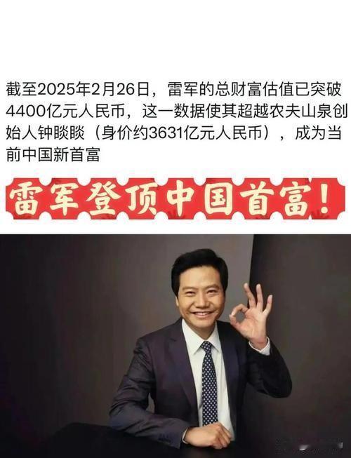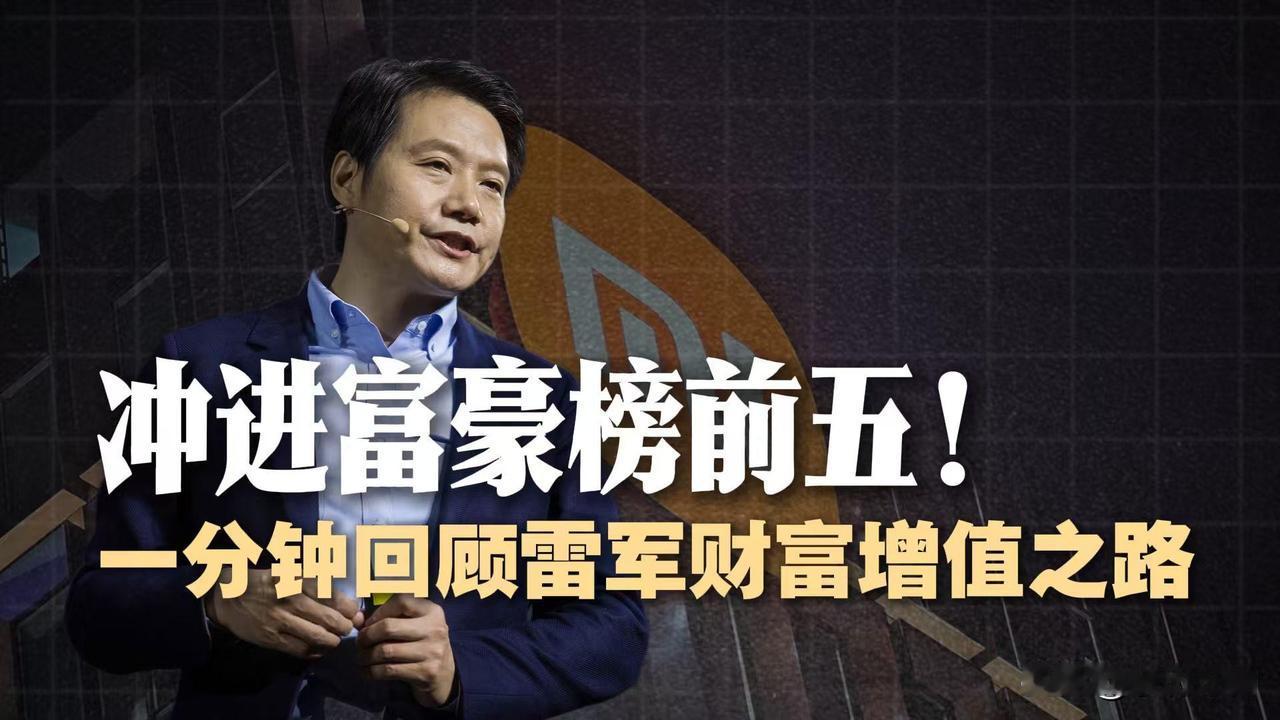 下面这个表格,可以让你快速了解雷军财富暴涨背后的三大业务支柱。 财富支柱 具体表现 🚗 汽车业务(核心引擎) 2025年上半年,小米汽车交付15.72万辆,收入达213亿元。其单车毛利率在第二季度达到26.4%,盈利能力超越许多造车新势力,并有望在2025年第三季度实现单季度盈利。 📱 手机与IoT业务(基本盘) 2025年上半年,小米智能手机全球市场份额稳居第三(14.7%)。同时,IoT与生活消费产品业务收入达710亿元,同比增长51%,其毛利规模已超过手机业务,成为新的利润来源。 💼 投资与软件(生态布局) 雷军通过顺为资本进行广泛投资(如字节跳动、蔚来汽车等)。同时,他作为金山软件的董事长和重要股东,也受益于金山办公等业务的稳健增长。 💡 财富跃升的深层解读 除了表格中列出的直接业务表现,雷军财富的增长背后还有更深层的逻辑,这也能帮你理解这一现象的意义。 · “爆点”与“基本盘”的协同效应:小米汽车无疑是此次财富增长最亮的星。它不仅仅是一个新的业务,更关键的是与小米原有的手机、AIoT(人工智能物联网)业务产生了强大的协同效应,构成了独特的“人车家全生态”故事。这个充满想象力的生态模式,极大地提振了资本市场对小米未来的估值预期。 · 反映中国产业升级趋势:雷军财富的跃升,是中国新能源汽车和消费电子产业在全球崛起的缩影。他的成功,标志着以硬核科技、生态布局和全球化竞争为特征的新质生产力企业家,正在财富舞台上占据越来越重要的位置。 · “组团创富”的领导者:雷军的另一个特点是乐于分享财富。在2025年的胡润百富榜上,小米系共有10人上榜,这体现了雷军作为企业家强大的“组团创富”能力,也巩固了小米核心团队的稳定性。 💎 总结 总的来说,看待雷军成为五大富豪,可以不必局限于个人财富数字的变化。这更像一个观察中国科技制造业转型的窗口——它展示了通过生态布局和技术投入,中国企业能在全球竞争最激烈的领域实现跨界成功。 根据胡润的预测,随着消费电子与汽车行业进一步深度融合,雷军未来甚至将成为中国首富的有力竞争者。不知道你对小米生态中的哪一块业务更感兴趣呢?