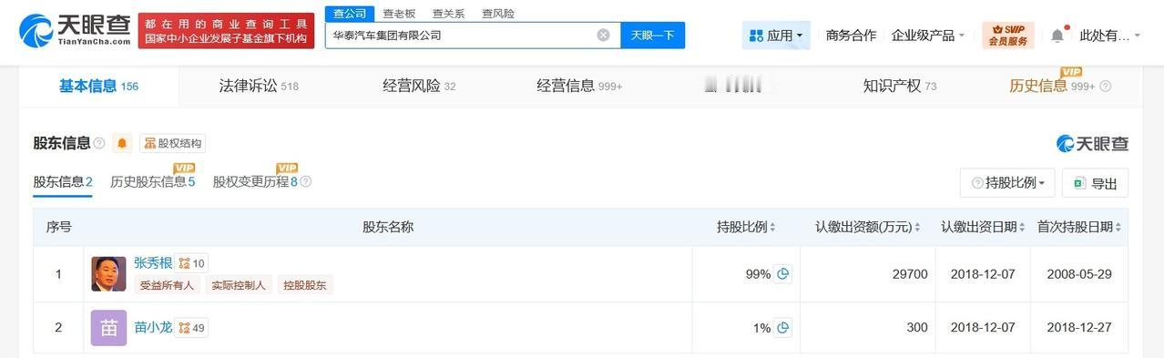 华泰汽车集团及张秀根等被恢复执行8.4亿 天眼查App显示,11月18日,华泰汽车集团有限公司、张秀根、华泰汽车集团(天津)有限公司等新增一则恢复执行信息,执行标的8.4亿余元,执行法院为天津市第三中级人民法院。 华泰汽车集团有限公司成立于2008年5月,法定代表人为苗小龙,注册资本3亿人民币,经营范围为委托生产及销售汽车零部件、配件,货物进出口,销售汽车,企业管理咨询,工程和技术研究与试验发展,技术推广。股东信息显示,该公司由张秀根、苗小龙分别持股99%、1%。天眼风险信息显示,该公司现存8条被执行人信息,被执行总金额超66亿元,此外,该公司还存在多条限制消费令、失信被执行人(老赖)及终本案件信息。 天眼查信息: