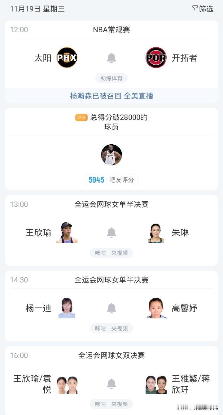 今女排决赛江苏战山东 开拓者战太阳杨瀚森 男篮半决赛广东战上海 山东战北京 男女200决赛 男女110米栏决赛网球多项决赛等焦点赛事关注