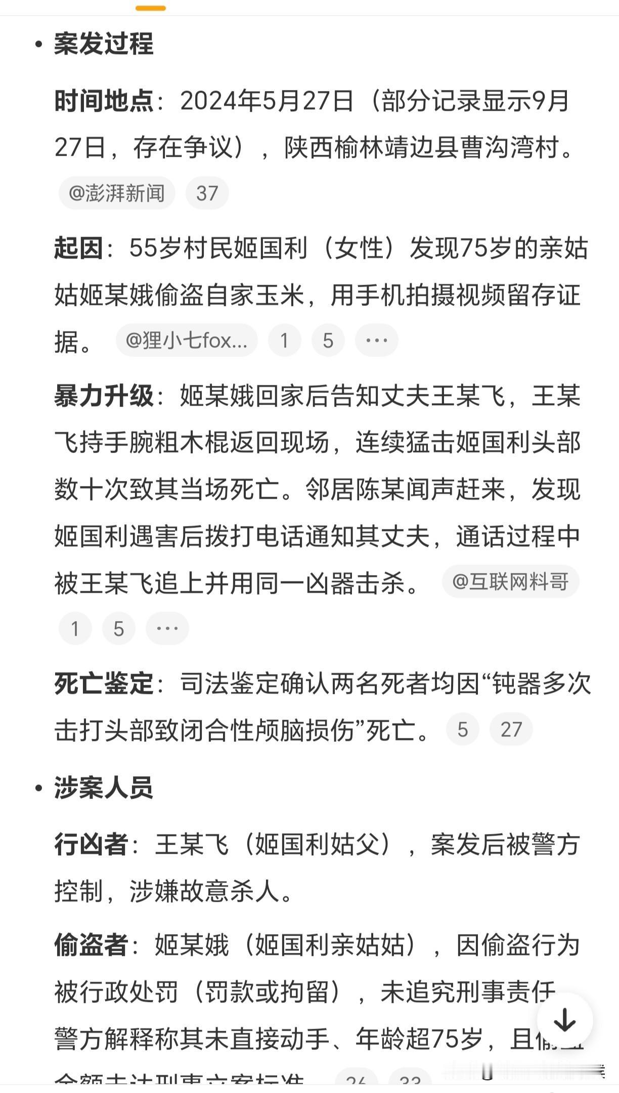 这事越想越觉得荒唐,因为几根玉米棒子,命就没了。 女子一家照顾了姑姑一家三十年,送吃送喝,最后却因为阻止姑姑偷玉米,被姑父活活打死。赶来帮忙的邻居也遭了毒手,真是无妄之灾。 更让人难受的是,去年发生的事情,到现在判决还没下来。留下的一家老小,靠着低保过日子,这日子该怎么熬?法律能给个明白交代,或许是他们现在唯一的指望了。