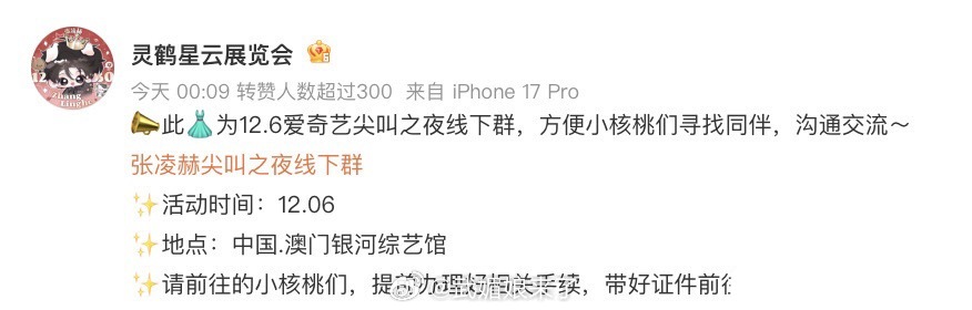 张凌赫、侯明昊、曾舜晞、丞磊、柯淳确认出席12月6日爱奇艺尖叫之夜活动!