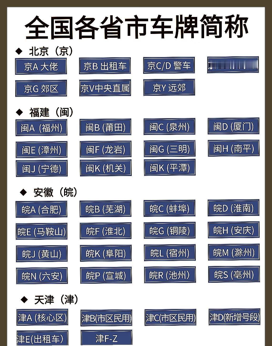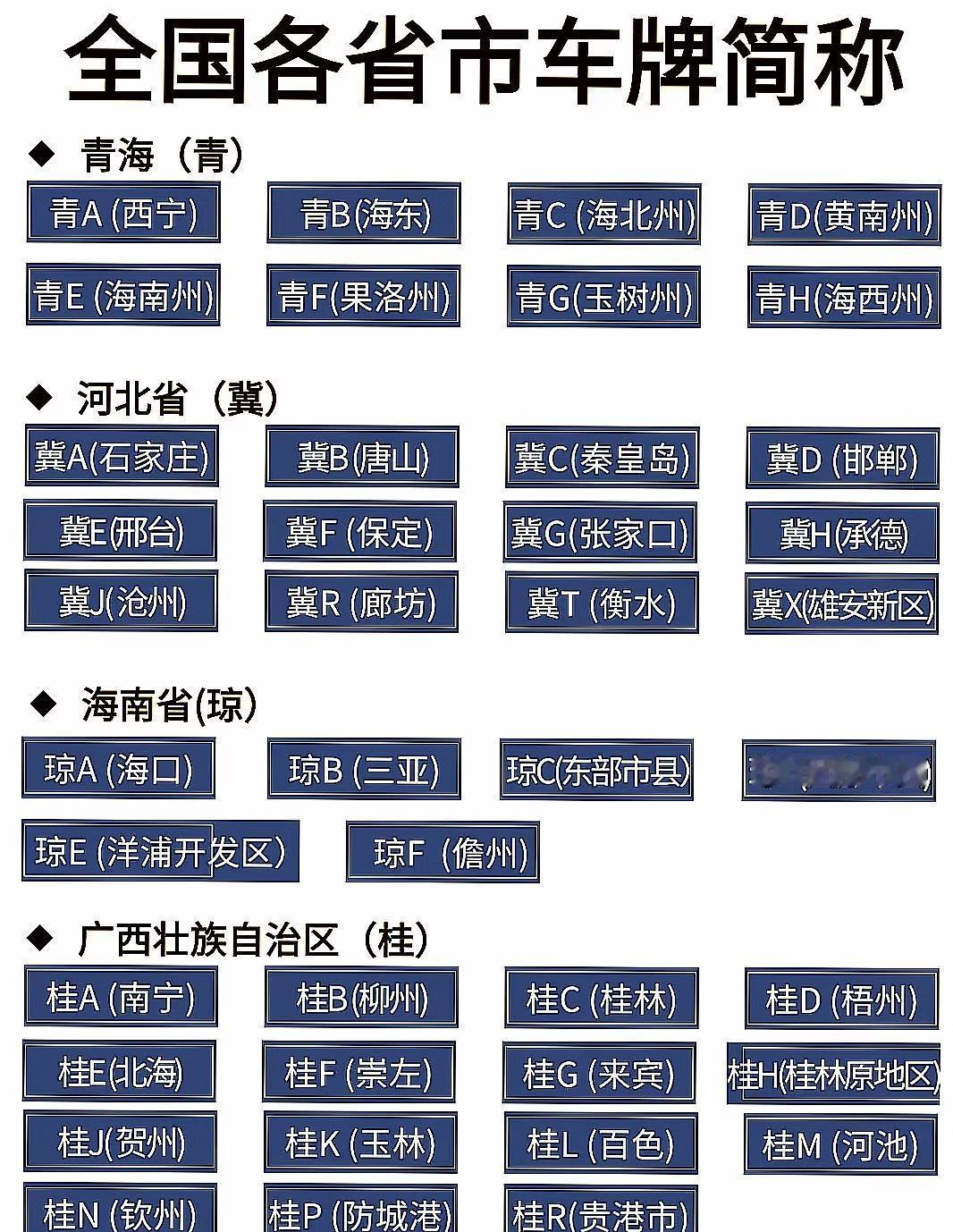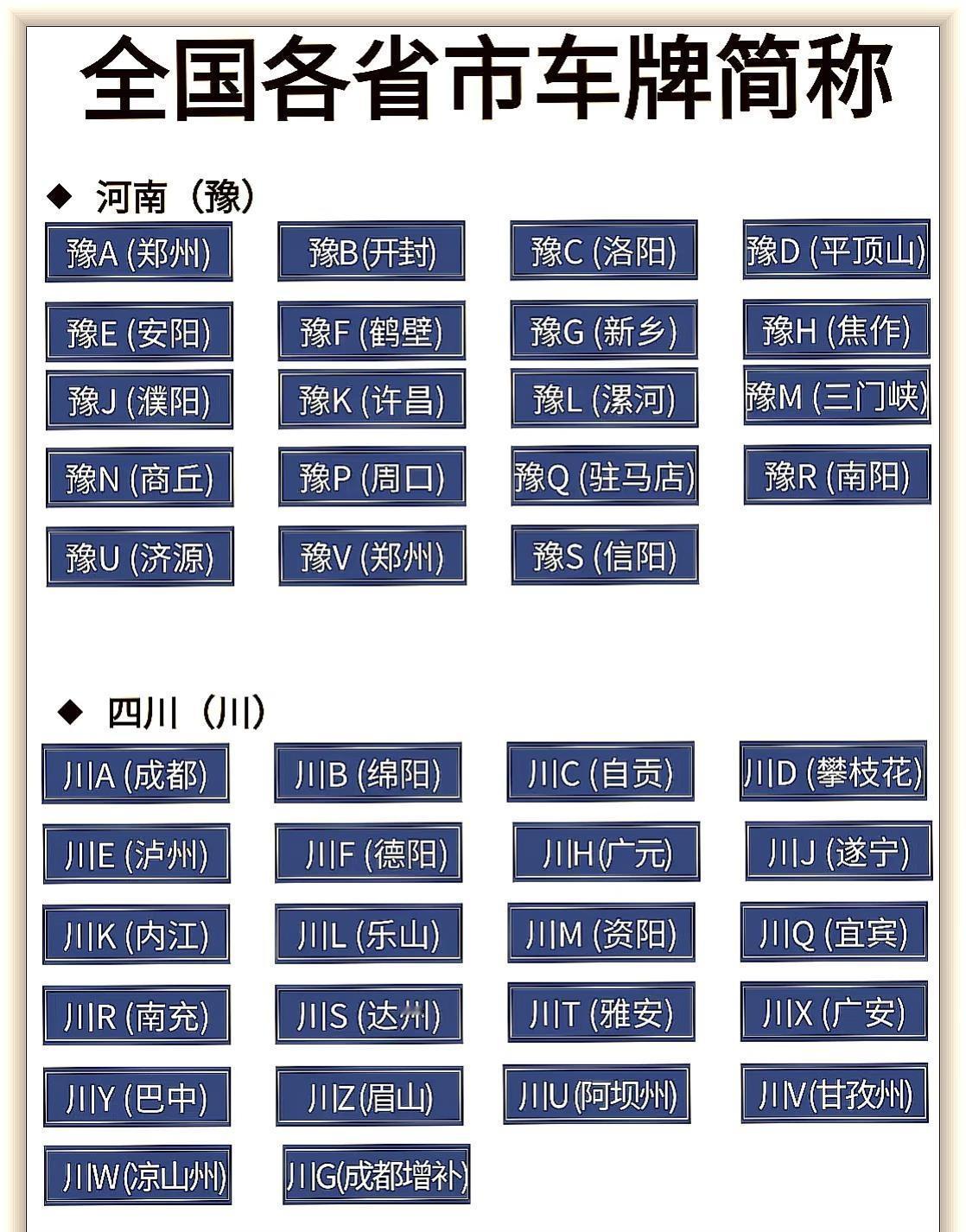 一次搞懂!各省市车牌字母命名规律 💡哈喽呀,我是车圈老炮儿菜哥,在汽车行业摸爬滚打多年啦,汽车那些事儿,我给你说明白~ 👉咱很多新手朋友买了车之后,头一件大事就是上牌。可好多人都迷糊,车牌数字前面那简称到底啥意思啊?出去旅游,看到各地车牌简称五花八门,这车牌命名到底有没有规律呢?今天菜哥用10张图,给大家讲讲各省市车牌那些事儿。 🚦车牌命名规律 1️⃣前面的“粤”“鲁”“津”这些,一般就是省份的简称啦。“粤”代表广东,“鲁”代表山东,“津”代表天津。省份简称后面跟着的字母A、B、C、D,通常代表这个省份里不同的市,而且“A”基本都是省会城市。就像“粤A”代表广州,“鲁A”代表济南。 2️⃣字母排序有门道 省份简称后面A、B、C、D、E的排序可不是瞎排的。既然A是省会,那B、C、D、E基本就是按照这个市在省内的综合实力来排的。所以啊,你瞅一眼车牌字母顺序,大概就能知道你所在的市在省内实力咋样啦。 3️⃣特殊字母有缘由 那些序列特别靠后的特殊字母,一般都有特殊原因。有的是因为某个市车牌太多了,前面的字母不够用,就加了些靠后的字母。还有就是“机关”等特定单位,也有专门代表的字母。这里我就不细说了✅ 🚙我是汽车爱好者菜哥,本期【各省市车牌简称】的分享就到这儿啦。咱们下期再见咯~ 车牌 宝藏车知识 新手买车攻略 车牌号码 北京车牌 买车 汽车知识 买车攻略 上牌