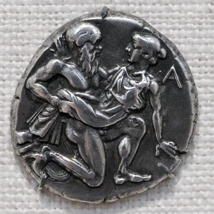 古希腊银币推崇性侵文化:半兽野性精灵抢仙女!这件文物是一枚来自希腊北部色雷斯区域