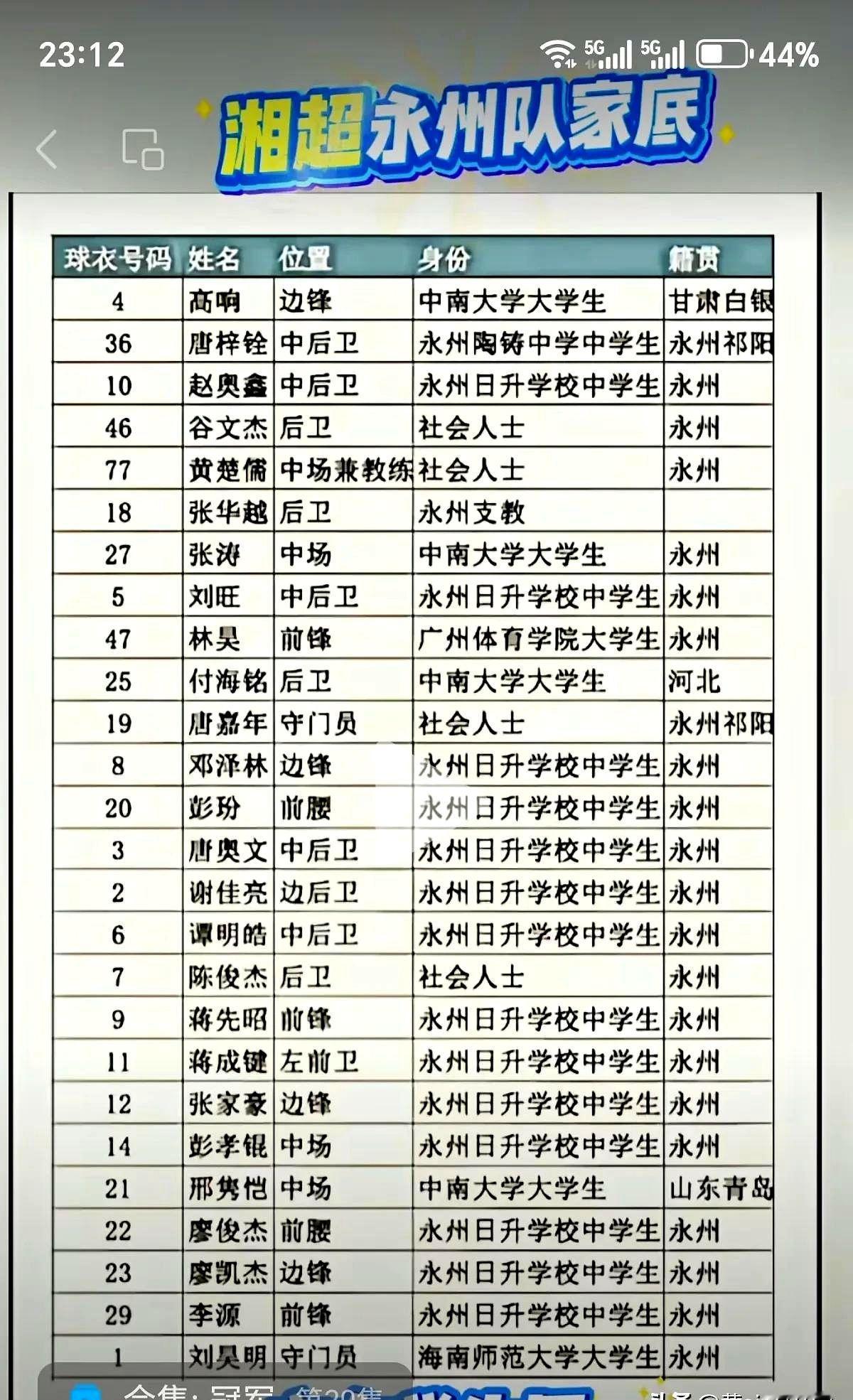 根据湘超的规则,可以有5名外援。 永州队最牛的球员高响不是永州人,永州队因为有高响这样强悍的球员,一路开挂。 永州队年轻,善于学习变通,所以才越战越勇越战越强。 明年,有钱的市州都会引进半职业球员。没钱的市州难搞哟。 我是永州人,七十四岁的老球迷了。 实事求是的讲,永州队的技术、脚下功夫、爆发力、冲刺速度、战术配合、临门一脚、点球战术都是可圈可点的。 球员基本没有大肚腩,这是能全场跑动的基本条件。 加之全队团结拼搏,球风好,教练审时度势,指挥得当。 这些都是永州队进步很大的主要原因。 但球员年轻,合理冲撞的能力不足。 当然,高响等三个不是本地球员表现出色,也是一个重要看点。 昨天高响不上,前面80分钟也搞了两个,后面再进两个不是他打进的。 还有47林昊被你搞丢了。
