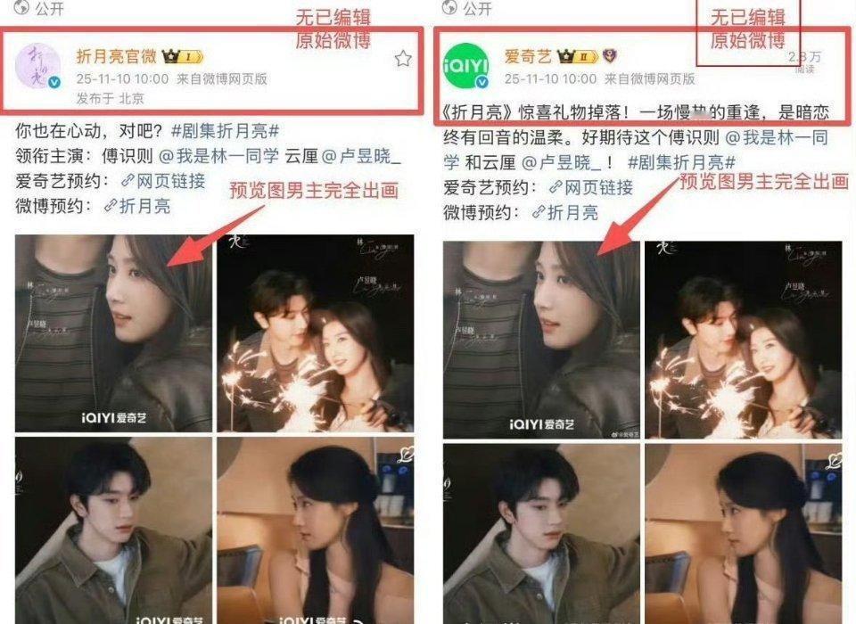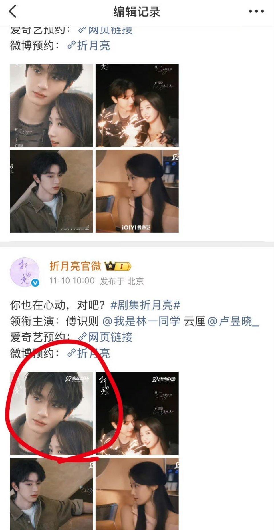 折月亮官微公布最新海报,粉丝指出预览图林一出画,官微反应过来迅速调整,结果现在女主卢昱晓又被挡了脸……非要用这张海报吗