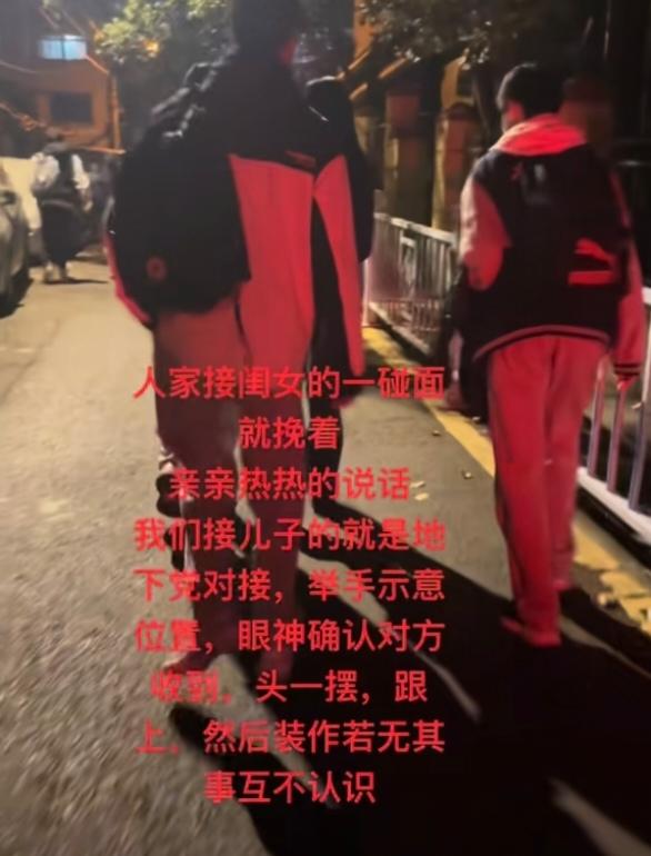 还记得儿子上初一的时候,平时我都是站在离他们学校门口500米左右的桥上等他,有天晚上下雨了,我就拿着伞到他们学校门口去接他。当时看到他出来就叫了一声他名字,结果他连理都没理我,直接和他同学说着话走了,我只好跟在后面往回走。 他跟同学分开后就问我:“平时都不下来接,今天怎么到学校门口了?”我说:“不是在下雨吗?怎么到学校门口接还接错了?” 他说:“以后还是在桥上等他,不让我到学校门口去接他。刚刚他周围的都是他同班同学,听到我叫他之后,就有同学跟其他人说某某的妈妈好矮”。他听到了,扎心啊!我这是被嫌弃了?说得我哭笑不得,现在的孩子还真是让人无语。 网友们也纷纷留言,述说着自己在接儿子放学时候的窘迫。 A网友:我家的都到家了,我还在学校门口,我看学校没人了,家里监控一看到家了,问他说,出学校大门就看见我了,像个傻子一样站那边,他躲开了[捂脸]。 B网友:去接高一的儿子,怕他没看到我,大声喊了他的名字,然后收到的警告是以后我只能在学校门口的第三棵大树下等他,他会过来找我,看到他了就走,不要逗留,不要大声说话,有话上车再说[笑哭]。 C网友:看到儿子了,冲他笑,本想说点啥,人家说,走,快走,走快点[捂脸]。 D网友:周五接我儿子,看到他跟同学一起走出校门,我咧着个嘴对他笑,他跟同学说,你看那个傻子像不像我妈[捂脸]。 E网友:我儿每天下晚自习就往我电动车后座一跨,说:走,快走!我真的像摩的师傅[捂脸]。 F网友: 我人还没接到,微信先到:人呢?看到你了,别说话,别喊我,别到处看,别拍照🤳,快往回走,去车那等我💔。 G网友: 我家高一的儿子亲口对我说:妈妈下次你来接我,别让奶奶来了,她卡粉卡的吓人[笑哭]。 看到各位网友的吐槽,真的是很感同身受,让人哭笑不得。各位家长有没有遇到同款初高中的熊孩子?独乐乐不如众乐乐,欢迎评论留言[比心]。
