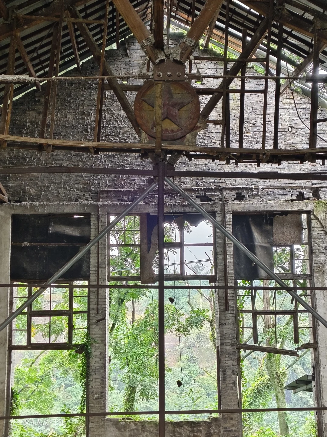 在重庆市北碚区大庆沟的一隅,原水文仪器厂电影院悄然伫立,只剩斑驳的青砖老墙。银幕上方的红色五角星,虽历经风雨侵蚀,颜色不再鲜亮,却依旧倔强地彰显着往昔的印记。