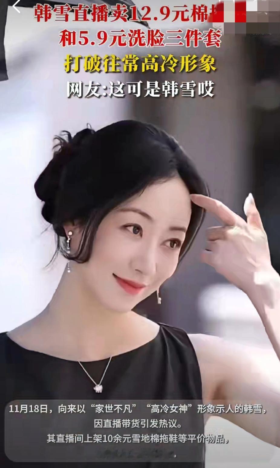 韩雪直播卖12.9元棉拖爆火!红三代女神接地气,网友:这才是真亲民 谁能想到,出身部队大院、从小有司机警卫员的“高冷女神”韩雪,直播间居然在卖12.9元的棉拖!11月18日这场直播直接颠覆大众认知,加厚防滑的平价棉拖一上架就卖爆6000多双,还有5.9元的洗脸三件套,选品全是老百姓日常用得上的平价好物。 要知道韩雪可是根正苗红的红三代,爷爷是抗美援朝大校,家世背景显赫,之前还在义乌淘3元抓夹、蹲夜市喝2元绿豆汤,甚至租档口卖4元搪瓷杯,早就没了明星架子。这次直播带货不搞虚头巴脑的天价商品,专挑十几块的日用品,网友都笑称:“这哪是明星带货,分明是邻家姐姐分享好物!” 其实明星接地气才最圈粉,不用刻意维持高冷人设,卖大家买得起、用得着的东西,反而更显真实。韩雪用行动证明:家世好不等于脱离生活,真正的优雅是既能站在舞台发光,也能低头感受人间烟火。 你被韩雪的12.9元棉拖种草了吗?你觉得明星带货该选平价好物还是高端产品?评论区聊聊~ 愿每个公众人物都能少点套路,多点真诚❤️ 韩雪直播卖平价棉拖 明星接地气名场面 直播带货清流 人间烟火气