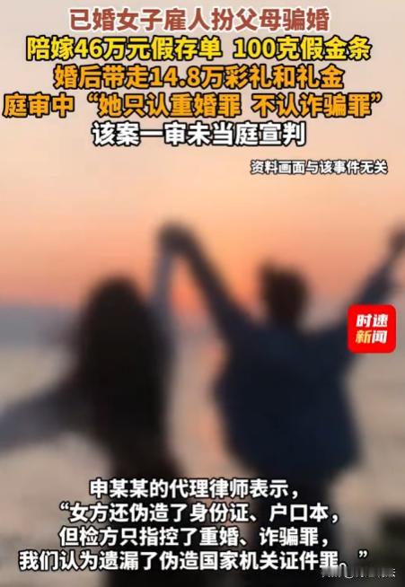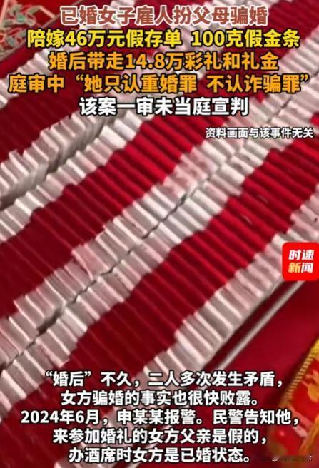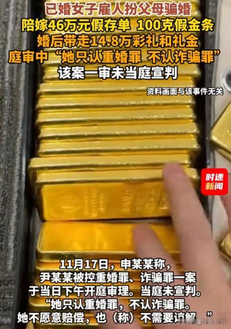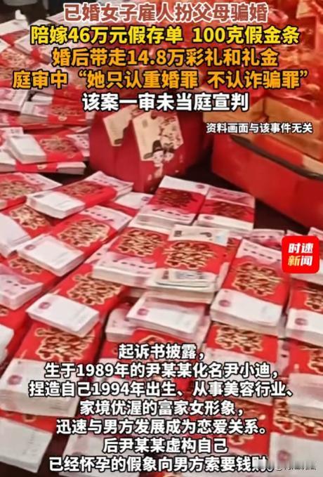 湖北随州,小伙申某某与女友尹某某“奉子成婚”,可婚后不久,骗婚真相就浮出水面。女方把彩礼礼金带回娘家,给的陪嫁竟是46万假存单和100克假金条,申某某报警后得知,来参加婚礼的父亲是假的,女方当时还是已婚状态,连怀孕、姓名、年龄都是假的。 这事,得从2022年说起,申某某在网络平台当主播,偶然结识了尹某某。 线下见面后,两人很快确定了恋爱关系。 同年9月,尹某某突然告诉申某某自己怀孕了,还煞有介事地发来一张B超单。 申某某当时又惊又喜,可他哪里知道,这张B超单是假的。 尹某某为了骗取信任,不仅伪造了怀孕证明,还编造了一个高官父亲、家境优渥的谎言。 申某某被这些虚假信息冲昏了头脑,10月就给了尹某某10001元见面礼。 他期待的幸福生活,却一步步走进了尹某某精心设计的陷阱。 尹某某安排演员扮演自己的父亲、母亲和哥哥,每次见面都让这些演员配合她演戏。 申某某完全被蒙在鼓里,对尹某某的话深信不疑。 2024年5月9日,两人在申某某老家办了酒席。 办完酒席后,尹某某以各种理由,把14.8万元彩礼及礼金带回了娘家。 她还给了申某某一些所谓的陪嫁,包括46万假存单、100克假金条和20000元改口费。 申某某当时没多想,以为尹某某家境好,这些陪嫁都是真的。 可没过多久,问题就出现了。 6月,两人因为一些小事产生了矛盾。 申某某在查询女方户口本信息时,发现根本查不到。 他又去银行查存单信息,结果也不对。 申某某这才意识到自己可能被骗了,他质问尹某某:你到底有没有怀孕?你的身份信息是不是假的? 此时的尹某某,还是不肯承认。 申某某说:我为了这个家,付出了这么多,你为什么要骗我? 尹某某却冷冷地回答:我骗你什么了?不就是拿了你点钱吗? 申某某要求尹某某退钱,尹某某虽然不情愿,但还是陆续退了78700元。 可剩下的钱,她不肯退了。 申某某无奈,只好报了警。 民警调查后告诉他,参加婚礼的父亲是假的,办酒席时尹某某已经结婚了。 原来,尹某某2015年就结婚了,还育有一女,一直没离婚。 申某某得知这些信息后,质问尹某某:你既然已经结婚了,为什么还要和我结婚?你到底安的什么心? 尹某某却一副无所谓的样子,说:我就是想找个有钱人,过好日子。 你既然愿意给我钱,那我就陪你演戏呗。 申某某觉得自己不仅被骗了钱,还被骗了感情,他决定要通过法律,为自己讨回公道。 2024年11月17日,尹某某被控重婚、诈骗罪一案开庭。 检方认为,尹某某有配偶还和别人办婚礼、以夫妻名义生活,构成重婚罪。 她还虚构家境、怀孕等事实骗钱,数额巨大,构成诈骗罪。 尹某某还伪造了身份证、户口本,应该构成伪造证件罪。 在法庭上,尹某某只认重婚罪,不认诈骗罪。 她辩解说:我和申某某结婚,是因为我爱他。我拿他的钱,也是为了我们的未来。 申某某听到这话,说:你爱我?你如果爱我,为什么会骗我?你如果爱我,为什么会和别人结婚? 尹某某被问得哑口无言,她低下头,不再说话。 在爱情和婚姻中,该如何保护自己?是应该盲目相信对方,还是应该保持警惕呢? 笔者认为,在爱情和婚姻中,既要相信对方,也要保持一定的警惕性,毕竟人心隔肚皮,无法完全了解对方的内心想法。 在涉及金钱和财产问题时,一定要谨慎对待,不要轻易相信对方的承诺,必要时可以寻求法律帮助,维护自己的合法权益。 尹某某的行为无疑是非常恶劣的,她不仅骗取了申某某的钱财,还伤害了他的感情。 这种行为不仅违背了道德伦理,也触犯了法律。 根据《刑法》第二百六十六条规定,诈骗罪是指以非法占有为目的,用虚构事实或者隐瞒真相的方法,骗取数额较大的公私财物的行为。 尹某某从一开始就虚构了高官父亲、家境优渥这些事实,还伪造了怀孕证明,这不就是典型的虚构事实吗? 她这么做,就是为了让申某某相信她,进而骗取申某某的钱财。 她拿到申某某给的见面礼、彩礼礼金,还有所谓的陪嫁,其实都是她精心策划骗来的。 她把彩礼礼金带回娘家,给的陪嫁又是假存单、假金条,这明显就是不想真心和申某某过日子,就是想把钱骗到手。 而且,她从一开始就没打算和申某某好好经营婚姻,她2015年就结婚了,一直没离婚,还和申某某办婚礼、以夫妻名义生活,这完全就是隐瞒真相。 从数额上看,她骗取的钱财数额巨大,远远超过了诈骗罪“数额较大”的标准。所以,综合来看,尹某某的行为完全符合诈骗罪的构成要件。 她辩解说拿钱是为了和申某某的未来,这能成立吗? 这不过是她狡辩的借口罢了,她从一开始就动机不纯,根本不是真心想和申某某过日子,所以这个辩解是站不住脚的。 尹某某的行为,是否构成诈骗罪呢? 检方认为她虚构事实骗钱,数额巨大,构成诈骗罪,而尹某某则拒不承认。 但法律是公正的,不会因为她的狡辩而改变判决结果。