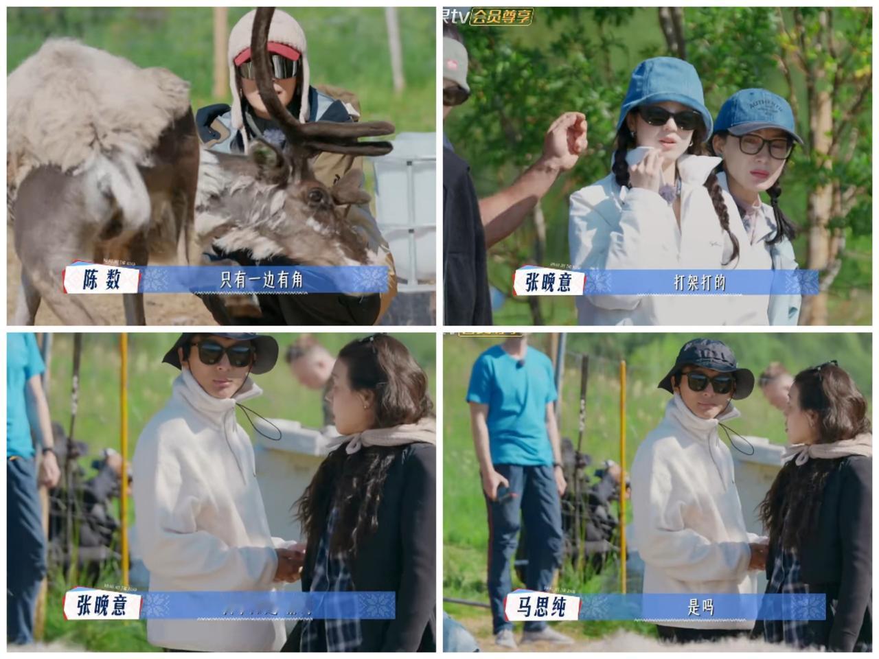 张晚意这样说, 马思纯一脸不可置信, 一问当地人才知道 原来是这样一回事。 花少团7人参加挪威鹿园, 陈数发现一只鹿的鹿角不对劲, 少了一边鹿角。 张晚意马上猜是打架导致的。 马思纯不相信, 马上询问当地养鹿人, 养鹿人坦言就是打架打的。 哎呀, 这样一看, 张晚意是太聪明了, 还是他小时候太淘气了, 经常跟小伙伴干架, 时常这里受伤那里受伤的, 身上就没有一块完整的皮。 所以一眼就看出来鹿失去鹿角就是打架导致的。 算是“同是天涯沦落人”吧。 张晚意曾强调自己小时候很乖, 从不会揪女生辫子, 也不会搞恶作剧, 直到当下听他这么一说, 就有点怀疑他小时候 真的如他口中的那么乖吗。 当下持保留意见哦。 你说, 这头失去一边鹿角的鹿, 遇到张晚意 算不算遇到知己了, 一下子就知道 它是打架打成那样的。 哎呀, 没点这方面的经历, 真的没有办法一下就猜出来呀。 其实小男孩调皮打架很正常呀, 这样的孩子长大才更加机灵, 有自己的主见。 也许张晚意从这头鹿身上 看到了自己小时候的“缩影”吧