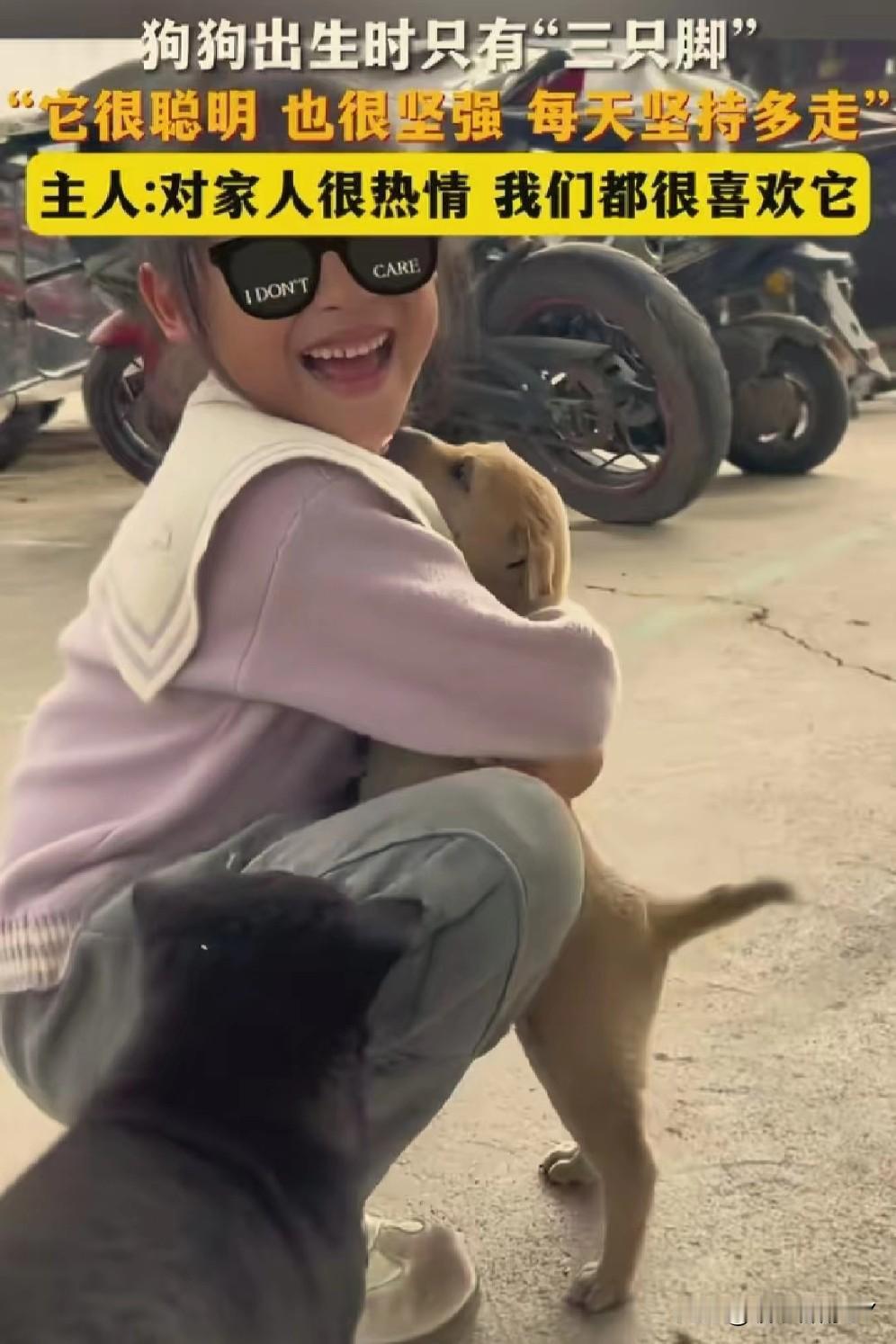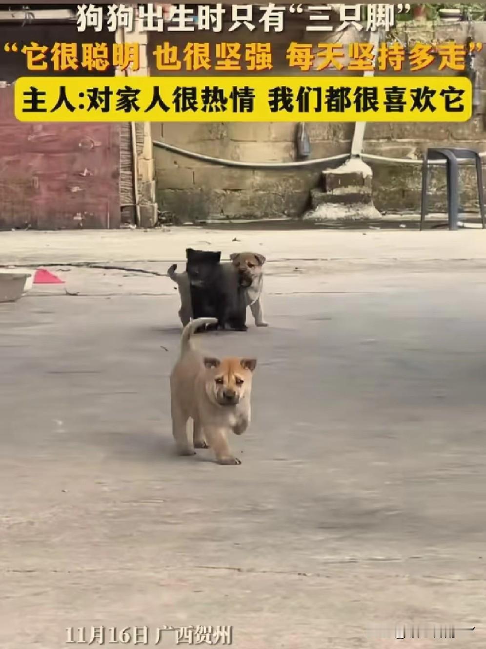 绝了!广西这只三只脚的小狗,坚强又粘人,把全家人的心都暖化了! 在广西贺州,有这样一只特别的小狗,它出生时就只有三只脚,却用顽强的生命力和乐观的态度,活成了生命的强者! 这只小狗今年10月出生,起初,由于身体缺陷,主人曾一度动过放弃的念头。 但是,“三只脚的狗是好狗”这一信念,让它留在了这个充满爱的家里。 它很聪明也很坚强,刚开始学走路时,它时常摔倒,却从不言弃,每天坚持多走几步。从摇摇晃晃到能在崎岖的石头路上奔跑,每一步都体现它对生命的执着。 更让人暖心的是,它对家人格外热情。每次家人从外面回来,它都会摇着尾巴热情迎接,用小小的身躯传递着无尽的温暖。 狗妈妈也对它宠爱有加,格外地偏爱,或许是在它身上看到了那股不服输的劲头。 它的存在,就像一道光,照亮了身边人的生活。 尽管天生不完美, 它却用坚韧和热情,诠释了生命的无限可能。 这样的小狗,谁能不爱呢?让我们为它的坚强点赞,也为这份跨越缺陷的爱与温暖而感动! 条友这一周
