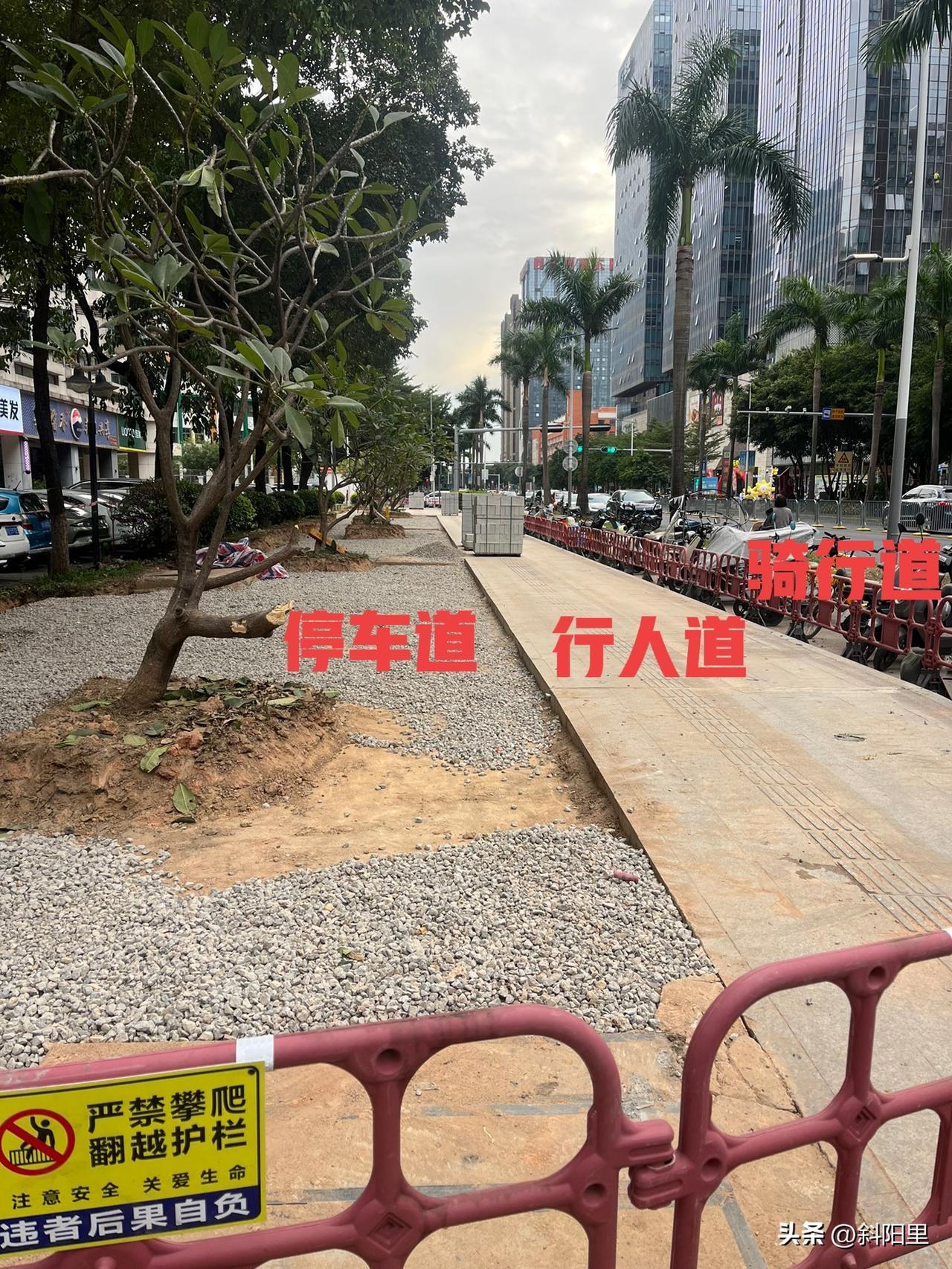 深圳电动车骑行难,停车更难,早晚高峰期一过,路上停的全是电动车,行人都没法通过。深圳电动车的问题已经到了人人喊打的地步了,但要相信深圳的效率!电鸡围城的问题已经成为迫在眉睫要解决的事情,对于民众持续关心呼声很高的事情,深圳已经开始在行动!这原本是一条景观绿化带,为了解决电动车人行以及停车问题,已经把绿化带清理出来用做电动车的停车问题,腾留出空间,让非机动车道、人行道、停车道三道分离,让出行更安全、快捷,有序。