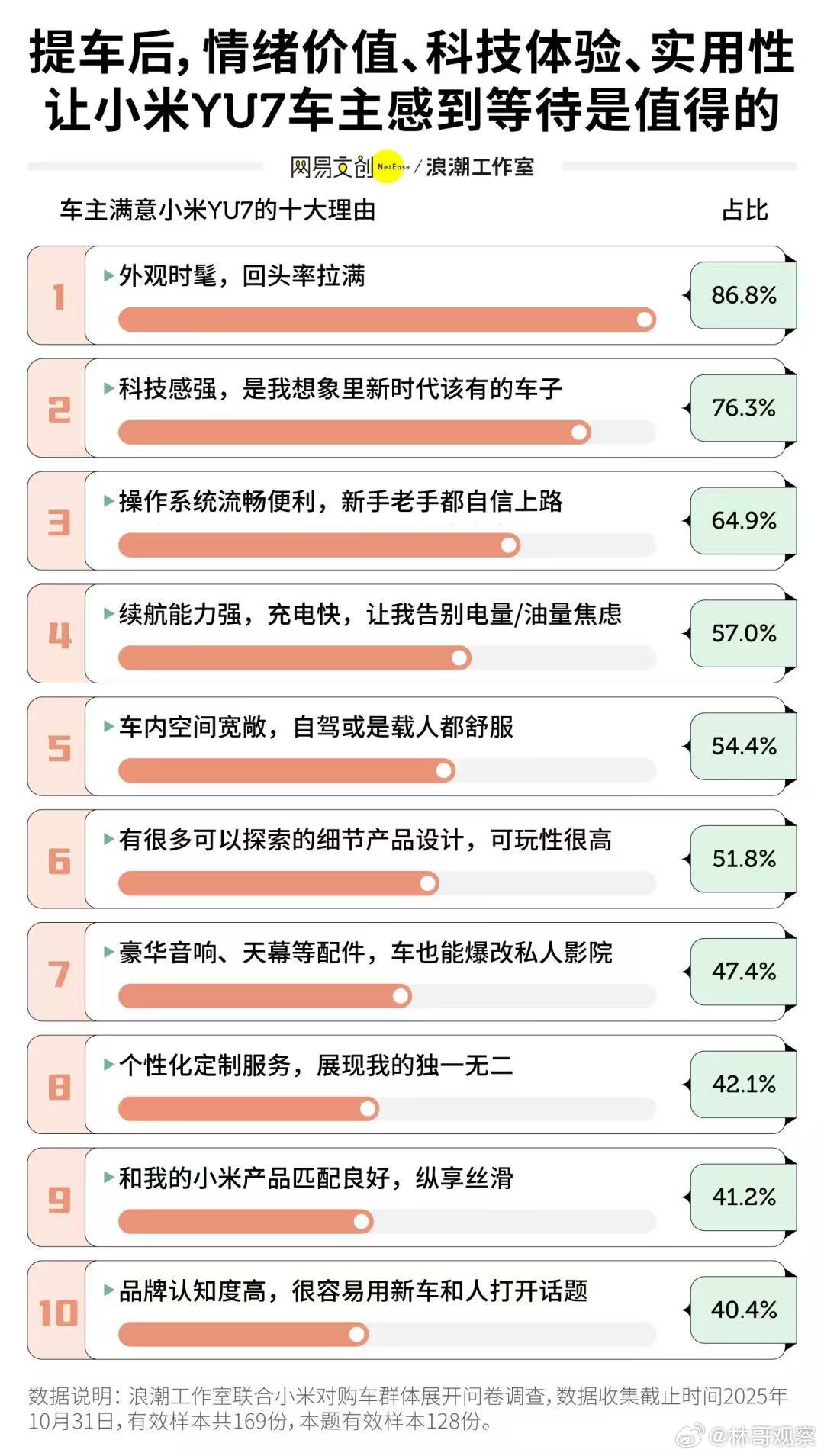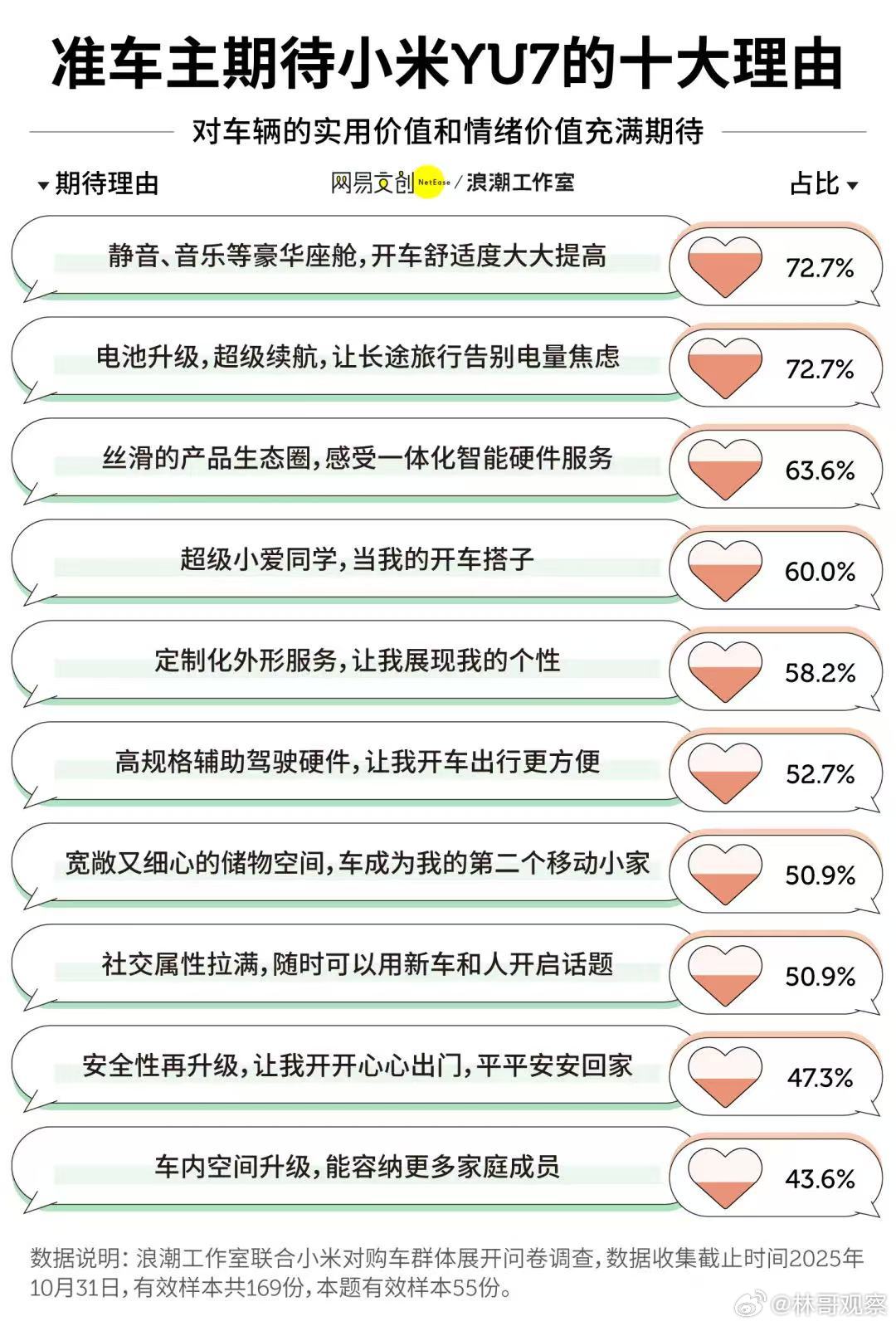 年轻人的第一台SUV,不选‘平替’只选‘顶配’!小米YU7的颜值,直接让95.3%的车主一见钟情!这哪是车?是移动‘时尚单品!零重力座椅让71.9%的人坐上就不想下来,静谧座舱更绝,71.1%的车主说堵车都能当‘沉浸式音乐厅’!市面上SUV都像复制粘贴,YU7偏要当‘独一无二’!等一年?值!因为这车不是备胎,是本命座驾!这波等待不是妥协,是年轻人对‘不将就’的倔强坚持!选YU7,就是选不平凡的生活态度!