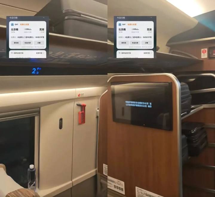 11月18日,有网友在社交平台发视频称,自己乘坐11月18日由北京南开往芜湖的G41次列车,车票信息显示,座次为06车01F,但上车后发现,06车厢内并无01F的座位。视频显示,列车常见的01D、01F的位置被一处行李架“代替”。