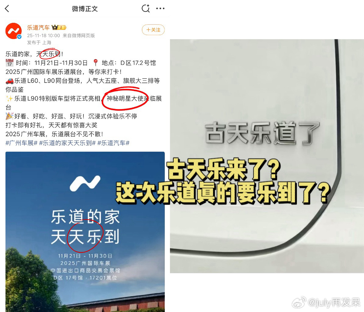 "乐道官宣的新图,有名中带“乐”的明星登场广州车展!猜猜是谁?!我觉得像古天乐