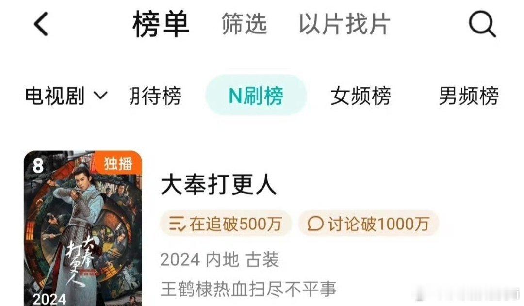 OMG,王鹤棣《大奉打更人》N刷榜第8,长尾强 大奉打更人真的值得