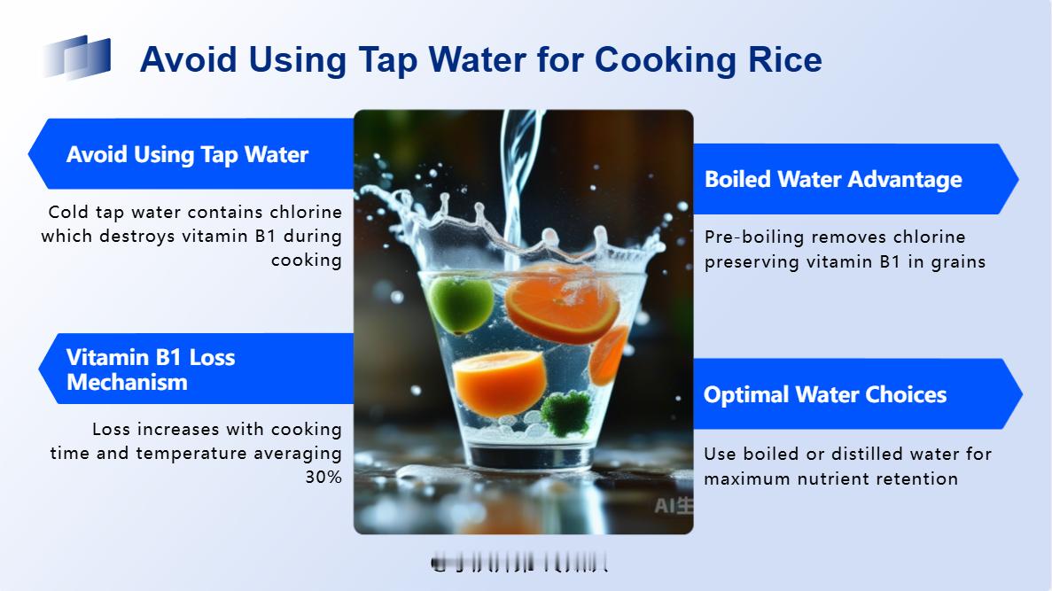 可直接用自来水煮饭人们在煮饭时,都习惯用生冷的自来水,其实这是不科学的。因为生冷的自来水中含有一定数量的氯气,在烧饭过程中,会大量破坏粮食中人体不可缺少的维生素B1。据食品测定表明:在用生冷自来水煮饭过程中,维生素B1的损失数量与烧煮时间、烧煮温度成正比(即烧煮时间越长、烧煮温度越高,损失也就越大),一般情况下,损失大约为30%。如果用烧开的水烧饭,维生素B1就可以免受损失,因为烧开后的水,氯气已经随水汽蒸发掉了。所以,我们不能直接用自来水煮饭,而用白开水比较好,或者用蒸馏水也是不错的选择。|||