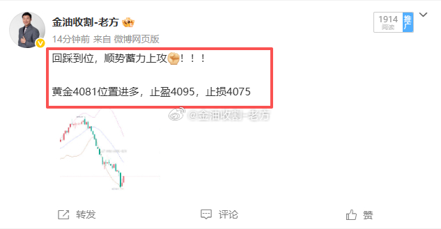 黄金4081多单截止目前4086已斩获近60点利润黄金多单方向正确,获利近60点利润。跟上的兄弟注意减仓护利,稳健的朋友可以先行撤退,只要跟对人,那么你就会发现其实投资很简单,并没有你想象的那么复杂,只要自己的执行力到位,赚钱岂不是很轻松的事情?老话常说,术业有专攻,并不是没有道理的!