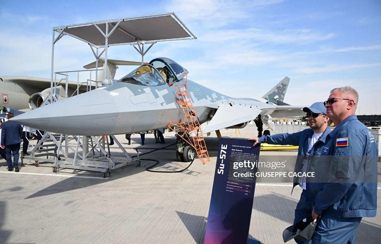迪拜航展上的俄罗斯苏57E战机 航空航天 武器装备 战斗机 航展 军事 航空 航空摄影 飞机 飞机降落第一视角
