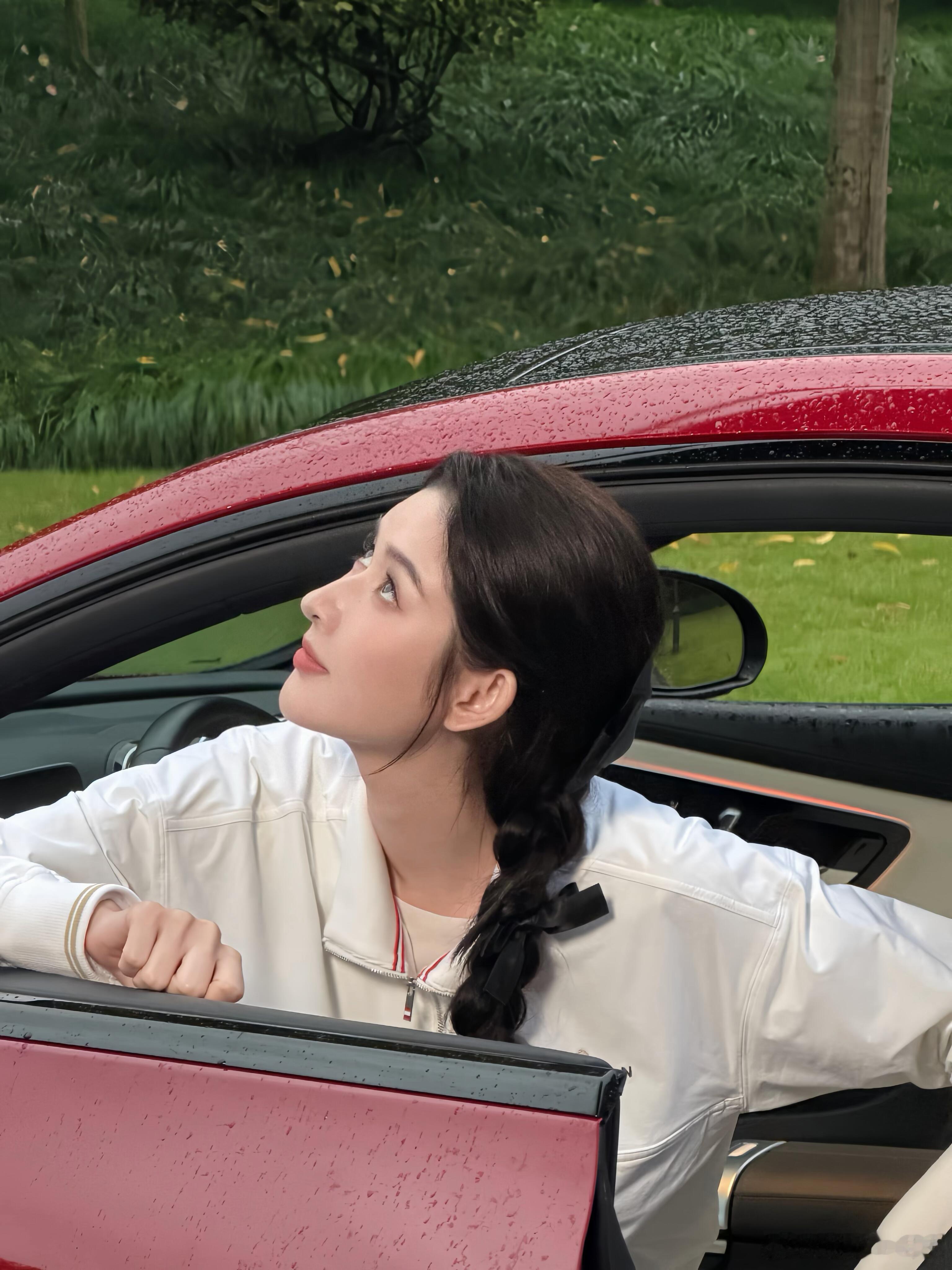 卢昱晓车里一坐,连风都跟着柔下来——碎发漫过眼尾是淡颜的松弛,抬眸时又带着点漫不