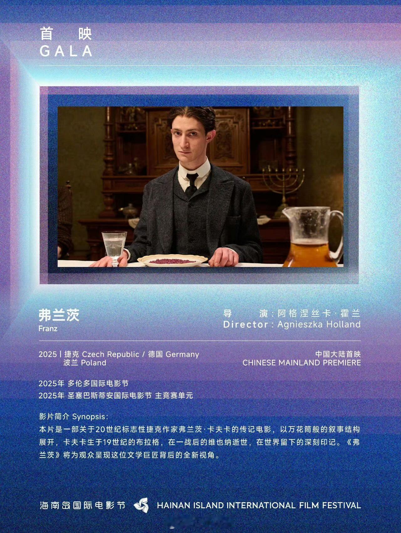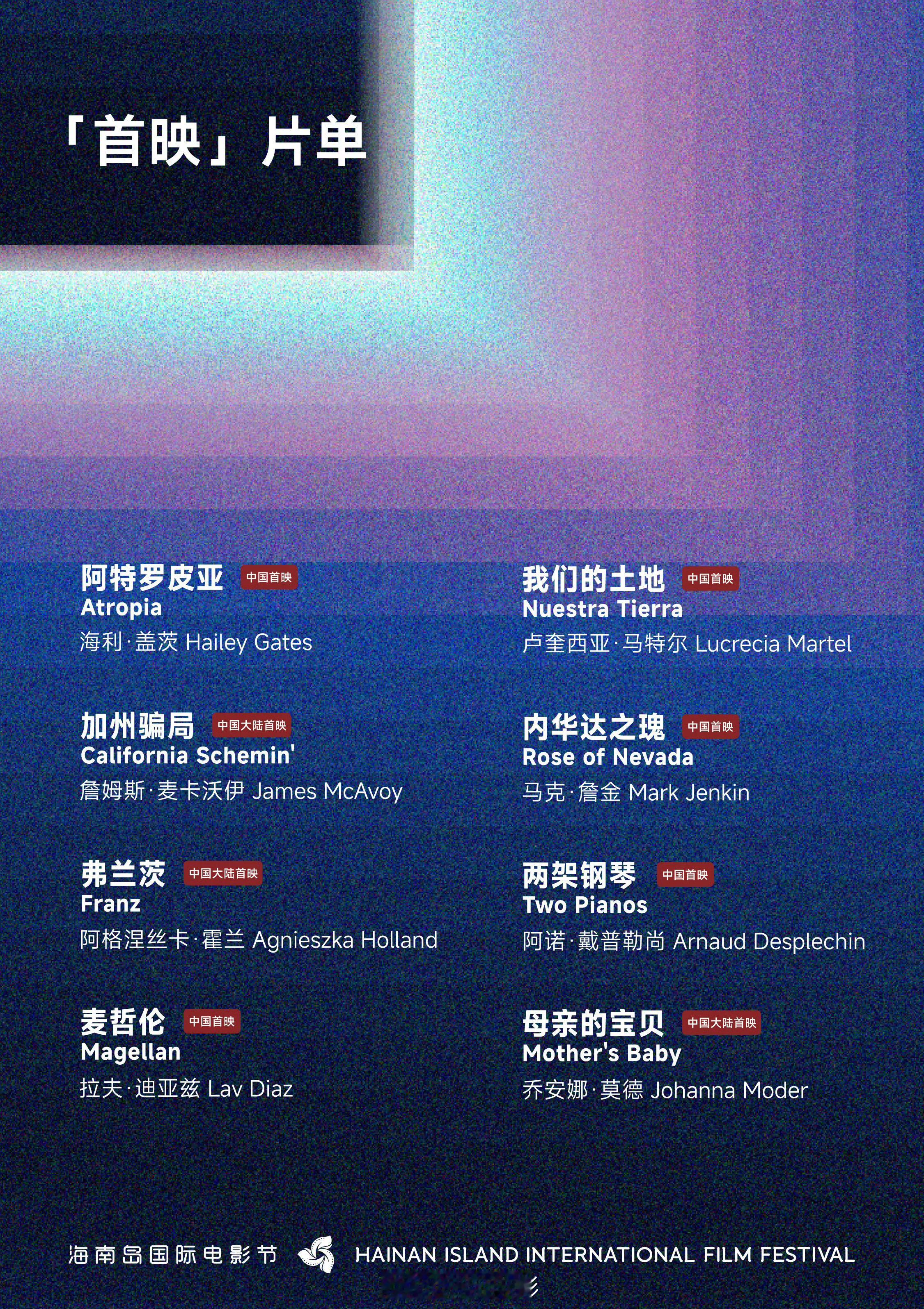 第七届「首映」单元片单已发布!本单元旨在汇集全年影展重磅作品,将全球电影大师的最新力作,与新兴导演的突破创举集中展呈。本单元所有影片均首次与内地观众见面,百分百新鲜呈现,在12月3日至12月9日的电影节期间,将新的风景带抵每个人的面前。以下为具体片单:海莉·盖茨《阿特罗皮亚》詹姆斯·麦卡沃伊《加州骗局》阿格涅丝卡·霍兰《弗兰茨》拉夫·迪亚兹《麦哲伦》卢奎西亚·马特尔《我们的土地》马克·詹金《内华达之瑰》阿诺·戴普勒尚《两架钢琴》约翰娜·莫德《母亲的宝贝》「首映」单元希望折射不同代际、不同国家的创作者对新故事、新表达的永不停歇的好奇与探索,开启对电影未来的丰富想象。