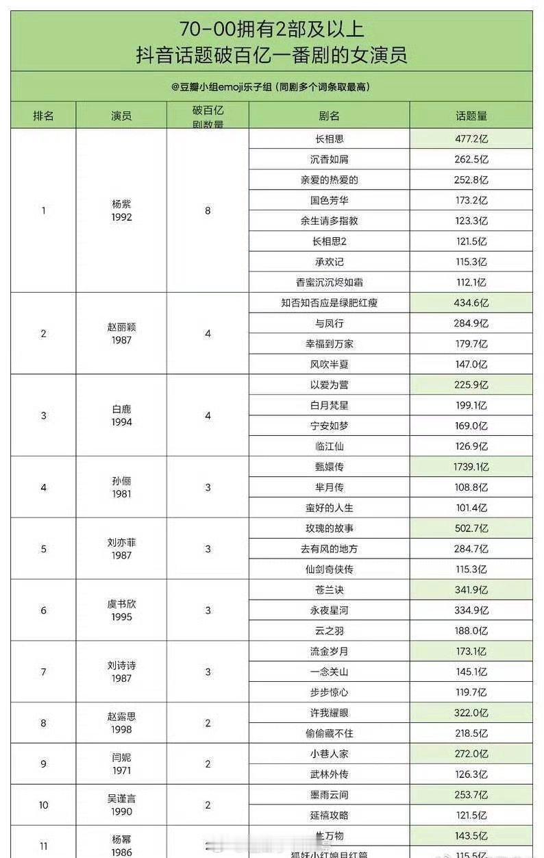 70-00男女演员播剧成绩表生前三:胡歌,张若昀,白敬亭花前三:杨紫,赵丽颖,白鹿