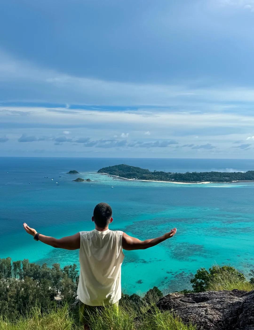 在阿当岛徒步偶遇蜥蜴,体力好就来 如果你正在丽贝岛,又恰好热爱户外、不怕晒、体力在线,那我真心推荐你抽半天时间,去阿当岛走一趟 我们是从日出沙滩搭船过去的,一人200铢往返(船如图4)。记得和船夫约好回程时间,最好互留电话,方便联系。一般留3~4小时在岛上就足够 上岛后直接跟着“查督悬崖”的指示牌走。沿途一共有三个观景台,我们爬到第二个就已经被风景震撼到,拍拍照就心满意足下山啦~路上还偶遇一只蜥蜴🦎,一见人就溜走了,超害羞。 📌 以下是你要知道的: [一]一定穿防滑运动鞋!全程野路+碎石+陡坡,普通鞋子真的不行。 [二]尽量上午去。下午不仅逆光拍照不好看,船夫也少,不容易打到船;而且回程遇上落潮,船可能没法停靠你酒店附近的沙滩。 [三]建议背个包,多带水(人均1升起),把运动鞋放包里,穿拖鞋上船,下船再换鞋。路边捡根棍子,能省力不少,有些陡坡真的需要手脚并用。 [四]驱蚊!驱蚊!驱蚊!岛上蚊子很疯狂,别给它们任何机会。 [五]观景点只是稍微开阔一点的野地,完全没有开发、没有护栏。拍照务必注意安全,最好结伴去。我们全程没遇到别人,说实话有点心虚……请一定把自己当成“安全第一责任人”,天气不好千万别勉强。 这些都准备好了,就尽管放松心情,享受阿当岛原始又治愈的风景吧~有什么不懂的评论区问 人生照片 活一些瞬间 阿当岛 丽贝岛