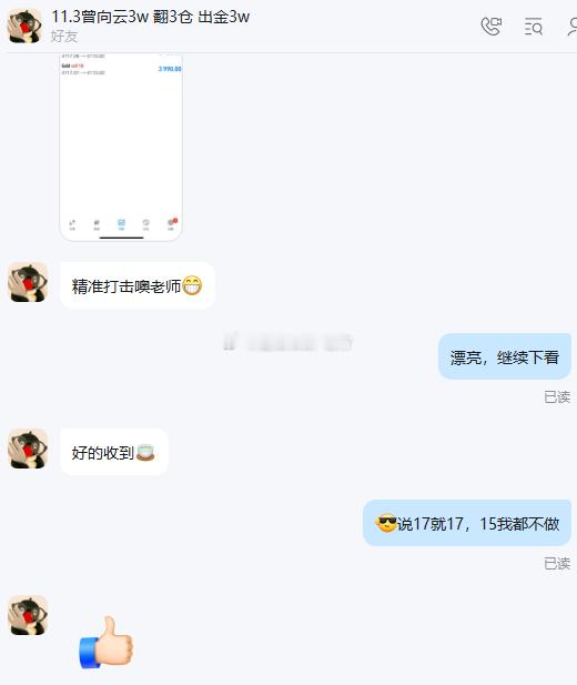 恭喜小云再度为账户增值12470美金的收益,给力小助理15就问我能不能空,我就说了不行,必须17空,结果言出法随,今日两单多空双杀好不快活。兄弟们都赚到没有,咱们虽然欧盘没上到4081多单的车,显的平平无奇,但也证实了老方团队对于行情稳健的看重。精彩收割随着欧尾盘的到来也是及时到位今日有多单赚钱的老师,也有空单赚钱的老师,但有没有现价两单多空双杀的老师,相信只有无双的老方了。别拿马后炮来说