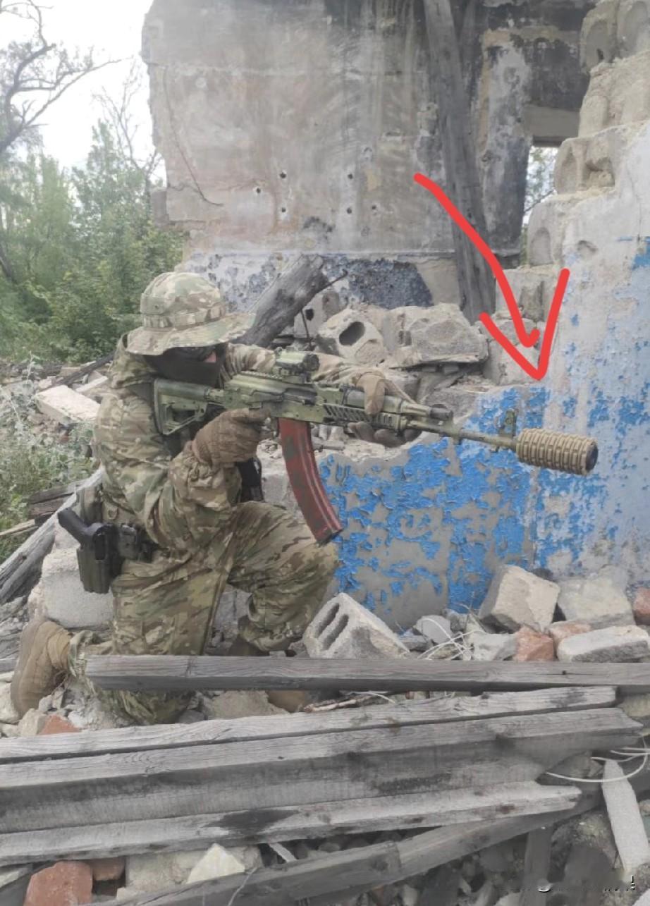 这是什么配置为什么这么大,看着一点都不协调,是准备发射的枪榴弹吗? 这名在前线的俄军士兵,使用的单兵武器很特别,照片中这是他在废墟中瞄准射击。特别的地方在于,他使用的突击步枪弹匣非常的长远远超出一般突击步枪30发的弹容量,另外枪口装了一个疑似枪榴弹的东西。 我开始以为装的是一个消焰器,但是仔细看看,又不像,哪里有这种设计的消焰器。 有朋友认识吗?这到底是什么?