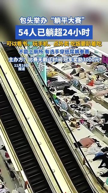 你见过最卷的躺平吗?包头一群人躺了24小时没下床,哪儿是懒啊,是在比赛! 不能上厕所得穿纸尿裤,吃饭要趴着扒碗,能玩手机点外卖,54人已经躺超24小时,冠军奖3000块! 有人说“为3000块遭这罪,疯了吧?”也有人说“3000块够交房租够买奶粉,比躺家里刷剧有用”。 突然懂了,我们平时的躺平是放松,这儿的躺平是动都不敢动的拼,搞笑但真实,普通人的钱哪有容易赚的? 你会为3000块穿纸尿裤躺24小时吗?你心中的躺平是休息还是熬生活费?