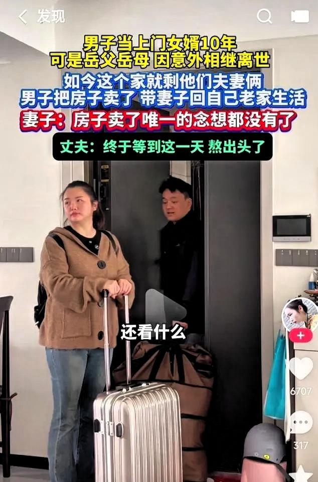 男子当了10年上门女婿,岳父母一去世就卖了房子带老婆回自己老家。 老婆在从小长大的房子里,摸着父母用过的旧沙发、挂在墙上的老照片,眼泪像断了线的珠子,每一寸地方都藏着回忆,怎么都舍不得走。 可他倒好,全程催得比谁都急,语气冷淡又不耐烦:“赶紧走!别耽误时间”,那模样哪里有半分对逝者的敬畏,对老婆的心疼? 网友清一色吐槽他“早有预谋”,说不定早就盼着这一天,只是碍于岳父母才没敢提。其实比起“急着脱身”,更让人膈应的是他卖房子的决定。那房子对老婆来说,哪里是一套普通的房产?是父母留给她最后的念想,是父母不在后唯一的精神寄托,更是往后日子里的退路和底气。 10年上门生活,就算他受了委屈、心里有疙瘩,老婆也始终真心待他,陪着他撑起一个家。可他倒好,完全不顾及老婆刚失去双亲的脆弱,一门心思只想着赶紧卖掉房子、离开这个“不属于”他的地方。他忘了,这房子是老婆的根啊,卖掉房子,就等于断了她和父母最后的联结。 就算现在夫妻感情再好,谁能保证往后没有变数?女人这辈子,手里总得有个依靠,要么是爱人的真心,要么是自己的退路。他这样不管不顾,直接断了老婆的后路,万一以后感情出问题,她连个落脚的地方都没有,想想都让人心疼。 上门女婿的不易大家能理解,想回自己老家生活也无可厚非,但做人不能这么自私冷血。老婆刚没了父母,正是最需要陪伴和安慰的时候,他不仅不体谅,还急着卖掉她唯一的念想,这样的做法真的太寒心了。 夫妻之间,讲究的是互相体谅、互相扶持,而不是单方面的牺牲和迁就。他只想着自己的感受,却忘了老婆跟着他,已经没了父母,再没了家,往后的日子该多没有安全感?