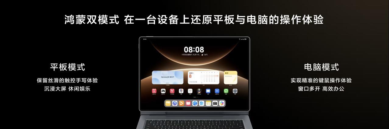 在今天的华为鸿蒙办公新品技术沟通会上,首款鸿蒙二合一平板电脑华为MatePad Edge正式亮相。它并非传统的二合一设备,而是基于鸿蒙系统真正实现了电脑与平板生态的深度融合,可以说是一次“真的二合一”突破。 据悉,这款新品或许能在单一主机上实现性能越级,有望兼顾平板形态的便携与PC级的强劲表现。据猜测,它可能采用一块大尺寸高素质屏幕,配合专属键盘配件,能在平板娱乐与电脑办公间无缝切换。鸿蒙系统底座的加持,或许意味着移动应用与专业办公软件能在同一设备上流畅运行,带来生态融合的全新体验。 华为MatePad Edge的亮相,不仅为沉寂的二合一市场注入活力,更可能重新定义移动办公与创作的可能性。其“巨幕平板,更是性能电脑”的双重身份,令人对正式发布后的实际表现充满期待。 华为MatePad Edge融合电脑与平板双生态