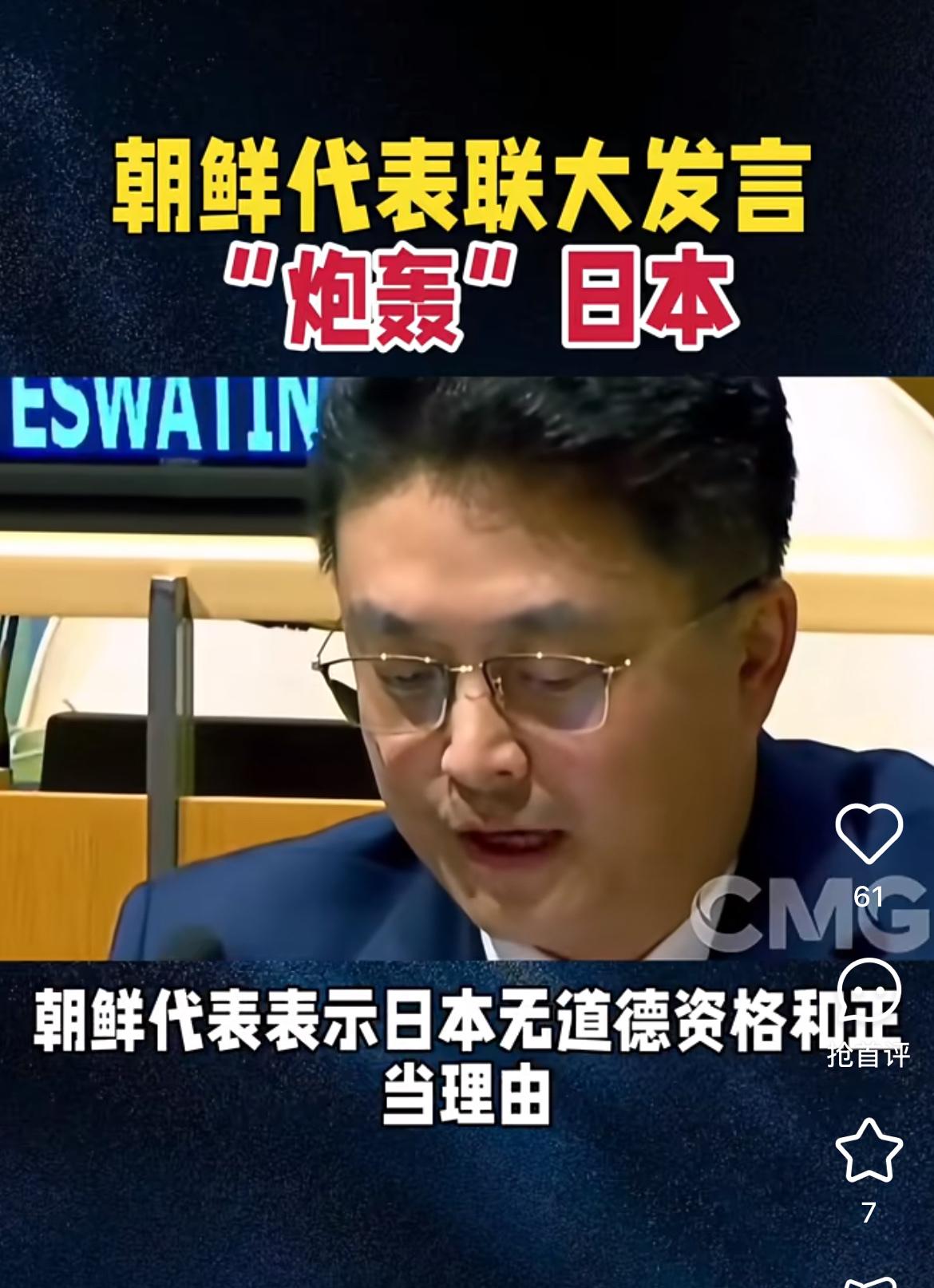 朝鲜这波发言太顶了! 联大现场直接“开炮”, 把日本的遮羞布撕得干干净净! 当地时间11月18日的80届联大安理会改革全会上,朝鲜代表字字铿锵:日本根本没资格觊觎常任理事国席位! 这话戳中了所有被侵略国家的心声——没清算历史的战犯国,配谈国际责任? 36年殖民统治可不是空话,日本当年在朝鲜烧书籍、禁母语、逼改日姓,用“思想矫正法”迫害爱国者,多少家庭家破人亡。 如今不仅拒不赔偿,还参拜靖国神社、歪曲历史,甚至忙着扩充军备。 真以为装失忆就能蒙混过关?朝鲜的发声,不只是为自己讨公道,更是给世界敲警钟:纵容历史修正主义,就是给和平埋雷。 国际舞台该讲正义,不是让战犯国粉饰太平。 你觉得朝鲜这波硬刚,能让日本正视历史吗?来评论区聊聊~朝鲜怒斥日本 朝鲜会议中心