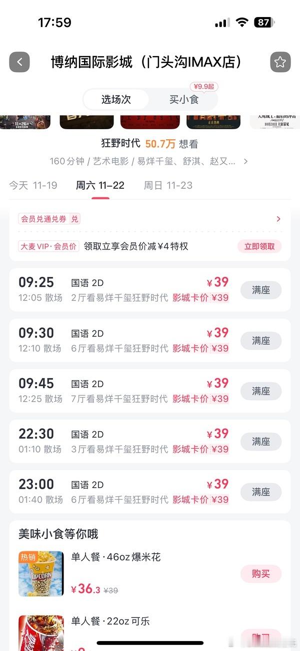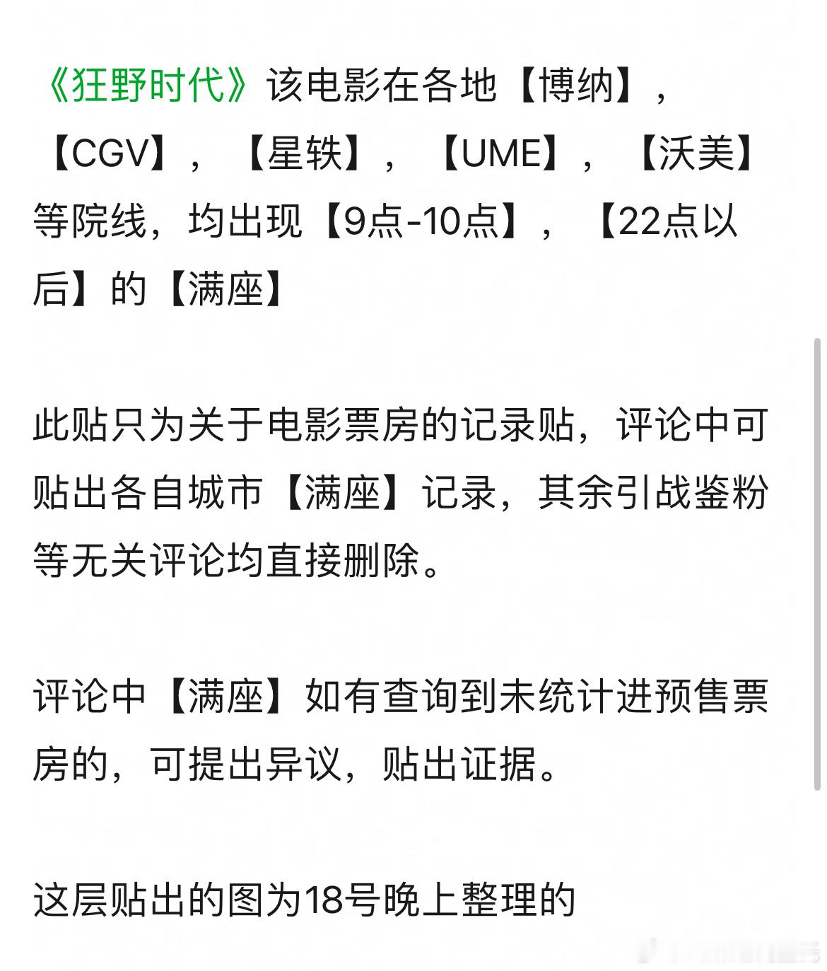 哇噢,下午4500万,这么快就超6000万了,预售的第4天反而增涨好快~~刚刚围观有人记录了, 整场整场的满座,还不是锁场,是早上9点,晚上11点那种。不锁,满座,计入票房。了解了一下,这种时间不属于粉丝包场,看到粉丝号召的规则里说要选更高更热门的场次