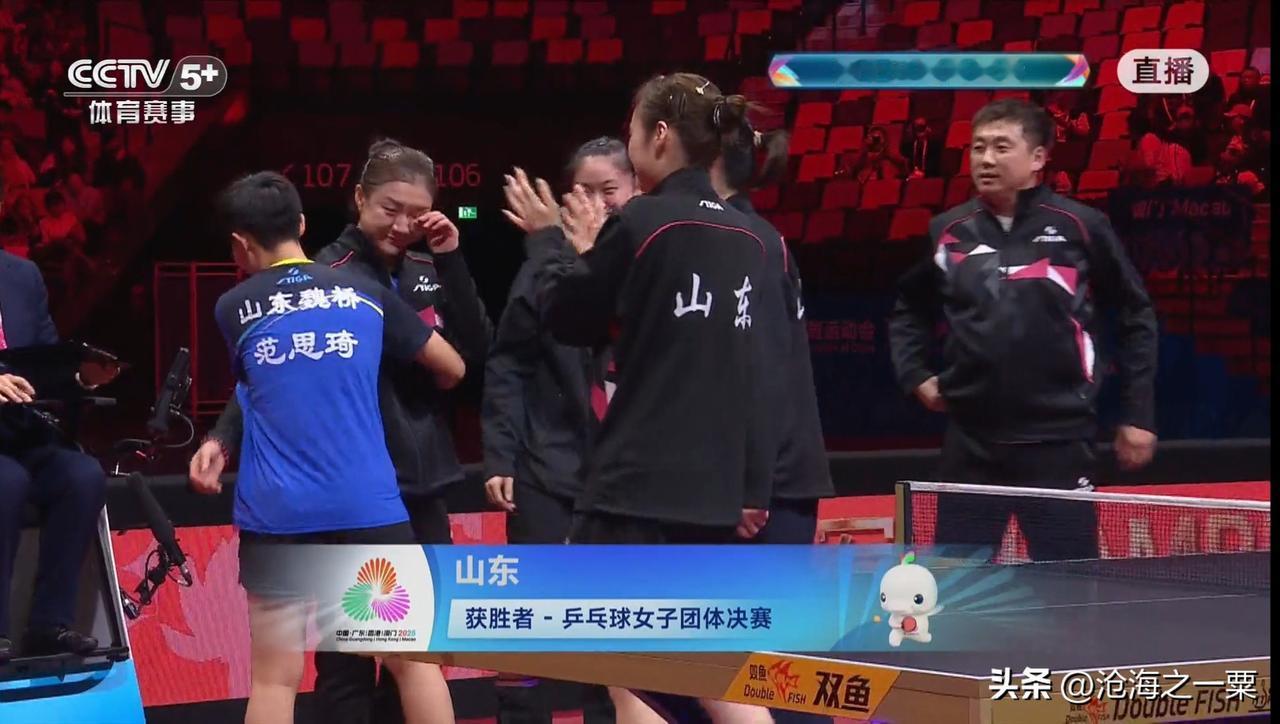 山东女乒真是太解气了,最后山东队擦网球得分真是幸运,为什么运气站在了山东队的一边,也许在现场嘈杂的声音能说明一切。