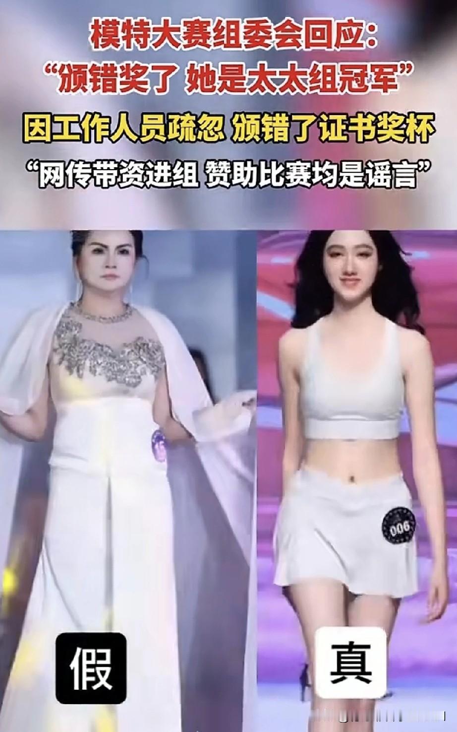 主办方针对模特大赛15号选手夺冠引发的争议事件作出回应,表示会给出一个结果。 结果揭晓,原来是颁错奖了,15号选手本是太太组冠军。只因工作人员疏忽,错发了证书和奖杯。不得不说,这解释倒也说得头头是道。可既然是太太组,后面一排的其他人却看起来十分年轻,这该作何解释? 我们能否一睹“太太组”其他参赛选手的风采呢?说这是太太组,实在难以令人信服,广东太太就是这般模样吗?组委会还是再斟酌个说法吧! 当时,15号选手头戴后冠,肩披锦带,手捧鲜花与证书,正在进行颁奖仪式,这么多工作人员竟都疏忽了? 如今事情曝光,就说是颁错奖了,那要是没被曝光呢? 如此幼稚的圆场说辞,着实可笑。若真是工作人员失误,这比赛的水准也太差劲了吧! 组委会此举并非“疏忽”,而是对赛事和选手极度的不负责!颁奖这么严肃的场合,都能发错证书和奖杯,暴露出的是组织混乱、态度敷衍。拿“乌龙”当借口,实在愧对选手的付出和公众的信任! 全国网友,除了广东网友,有谁会相信这番说辞呢? 对此大家怎么看?