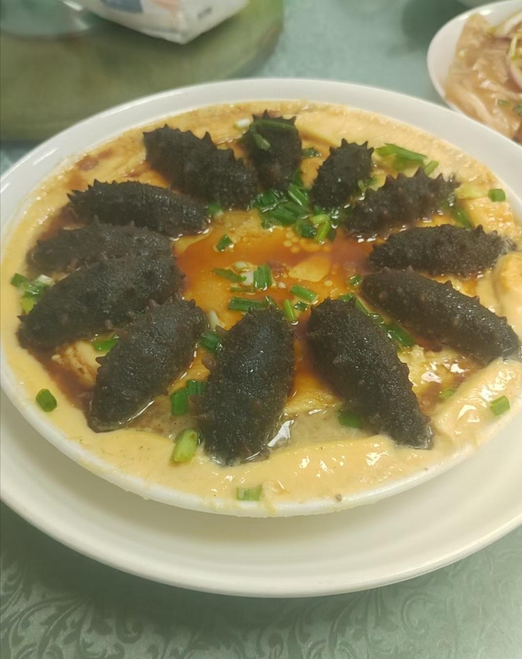 一中介女老板酷爱吃三文鱼和扇贝,每次聚餐必点,可是今晚她却选择了其它菜品,她老公看到桌上没有三文鱼都是河鲜小虾米什么的,于是一个盘子一个盘子的盯,还问服务员菜上齐了吗?服务员说:都上齐了您还有什么需要吗?他急忙说没有谢谢啊! 他就非常纳闷怎么就没点三文鱼,这老板娘平时这么爱吃,一个月聚餐一次从来没改变过,这次估计不知道要出什么幺蛾子,不大一会女老板来了,他立刻问今天怎么没点三文鱼啊!跟着你吃了几次以前是下不去嘴,现在不吃有时候还挺想的,女老板说:今天没看新闻取消进口日本海鲜,就算是以前进口的也得让它们没有市场,她老公呲牙咧嘴的说道:吃顿便饭咋还整上国际事物了,你事真多,这一句话不当紧女老板火爆脾气上来了,声音震耳欲聋大声吼道:别说什么风凉话,凡是政策规定的必须支持尽自己一点绵薄之力,上战场可能还比较遥远,可是经济战是天天上演,关税战打的天翻地覆,前几天安世半导体鸡犬不宁,现在有是那个什么苗口出狂言,必须让她们明白咱们不是好欺负的,谁敢越红线就让他们知道什么是痛,没想到一个中介女老板这么明事理,说的我都激动了,图片中的海参是广东沿海生产的,用鸡蛋蒸有点唐突了,最起码整个葱烧,实在不行家常口味的也行,总比这个蒸的好吃些,这么好的海参有点浪费,不过最后嫌海腥味大他们都没吃,我选择打包回家做葱烧,多放点老酒咱也过过嘴瘾。
