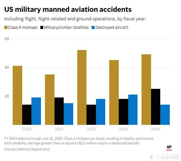 【数据显示,美军飞机事故激增】(美联社)——五角大楼内部数据显示,2024年涉