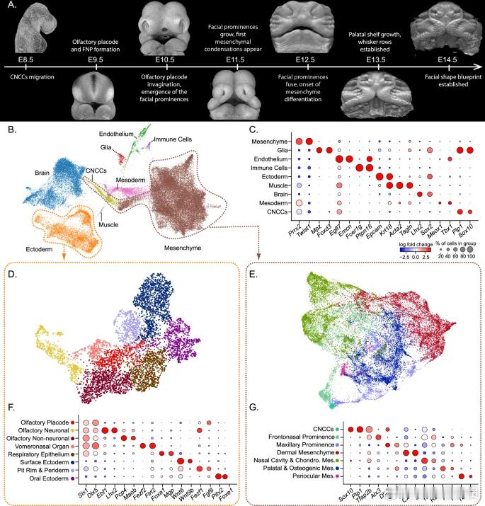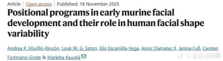 Nature子刊:面部形状的形成机理被揭开!11月18日,发表在 Nature Communications上的一项新研究,阐明了动物面部特征如何以复合方式形成和遗传,为人类面部多样性及先天缺陷提供了新的见解。人们的脸庞是身份的核心,承载着独特的遗传印记。科学家们通过破解小鼠面部发育的奥秘,意外找到了解开人类千姿百态面容形成机制的关键钥匙。在胚胎发育过程中,所有脊椎动物都遵循相似的“施工蓝图”。其中颅神经嵴细胞如同万能建筑师,它们迁移到特定位置后分化成骨骼、软骨等组织,通过面部隆起部位的生长融合,逐步塑造出基本面容轮廓。然而,这套精密系统如何产生如此丰富的面部变异,始终是未解之谜。研究团队首次以单细胞精度绘制了小鼠面部发育的动态图谱。他们发现看似均匀的面部间充质细胞,实际上存在着严格按空间位置划分的分子特征。这些携带不同“位置密码”的细胞群体,如同接受不同施工图纸的建筑队,各司其职地构建特定面部区域。更令人振奋的是,当科学家将这些发现与人类基因组数据对接时,发现了跨越物种的共通规律。通过整合全基因组关联分析,他们成功将影响人类面部特征的遗传变异——从眼睛间距到下巴轮廓——精准对应到特定的发育细胞群体。这解释了为何孩子会继承父母双方的特征组合:不同遗传指令各自调控不同区域的形态塑造,最终融合成独一无二的面容。这项突破性研究不仅建立了面部多样性形成的全新理论框架,更为先天性面部缺陷的成因提供了关键线索。许多导致面部畸形的基因突变,正是通过干扰特定细胞群体的发育程序而发挥作用。生命在亿万次细胞分裂中精确执行着遗传指令,既保持种族特征又创造个体差异。这项研究揭开了面部塑造神秘面纱的一角,让人类在认识自我、战胜先天疾病的道路上迈出了重要一步。