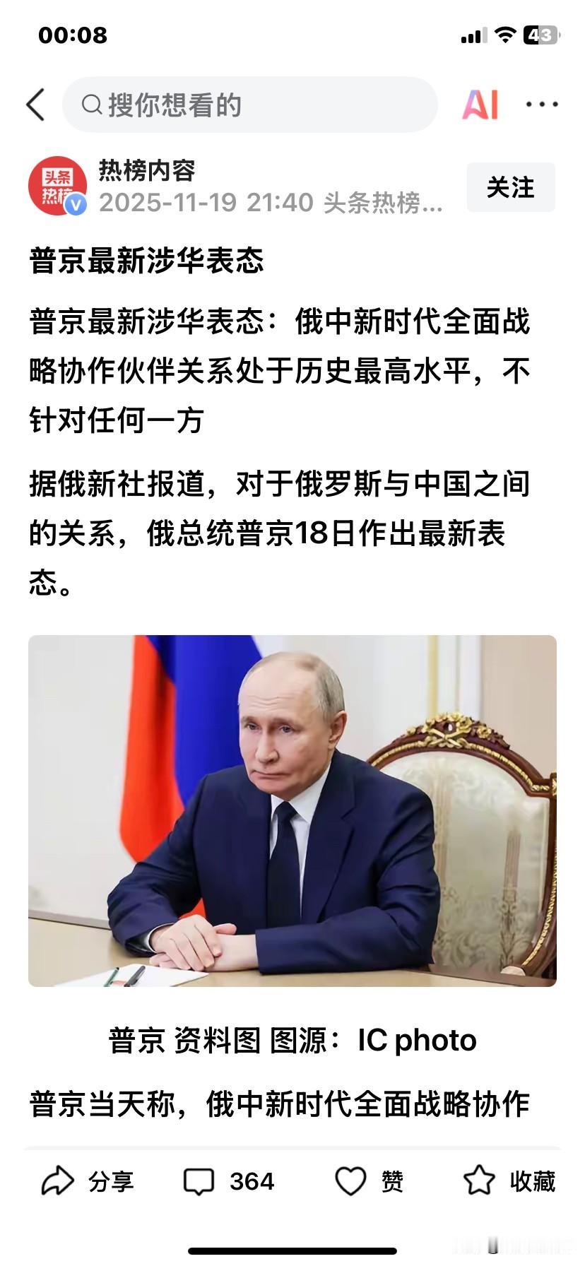 解读一下普京最新涉华表态:我们是“全面战略协作伙伴关系”,就是告诉那些想搞事的人