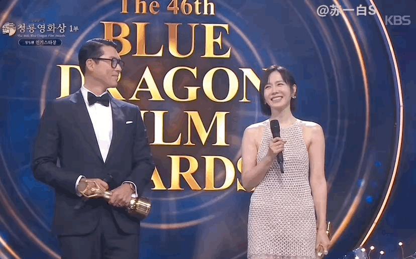 玄彬和孙艺珍在青龙奖同台👇两口子先是拿了人气明星奖,然后一个斩获影帝(凭借电影《哈尔滨》),一个喜得影后(凭借电影《无可奈何》)‼️