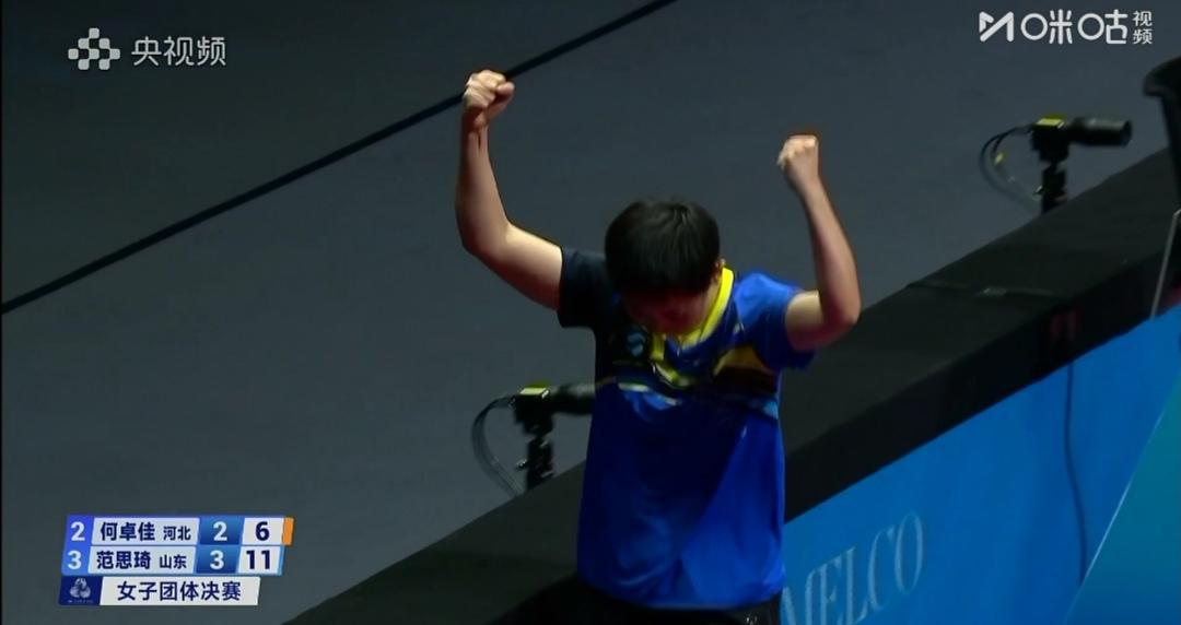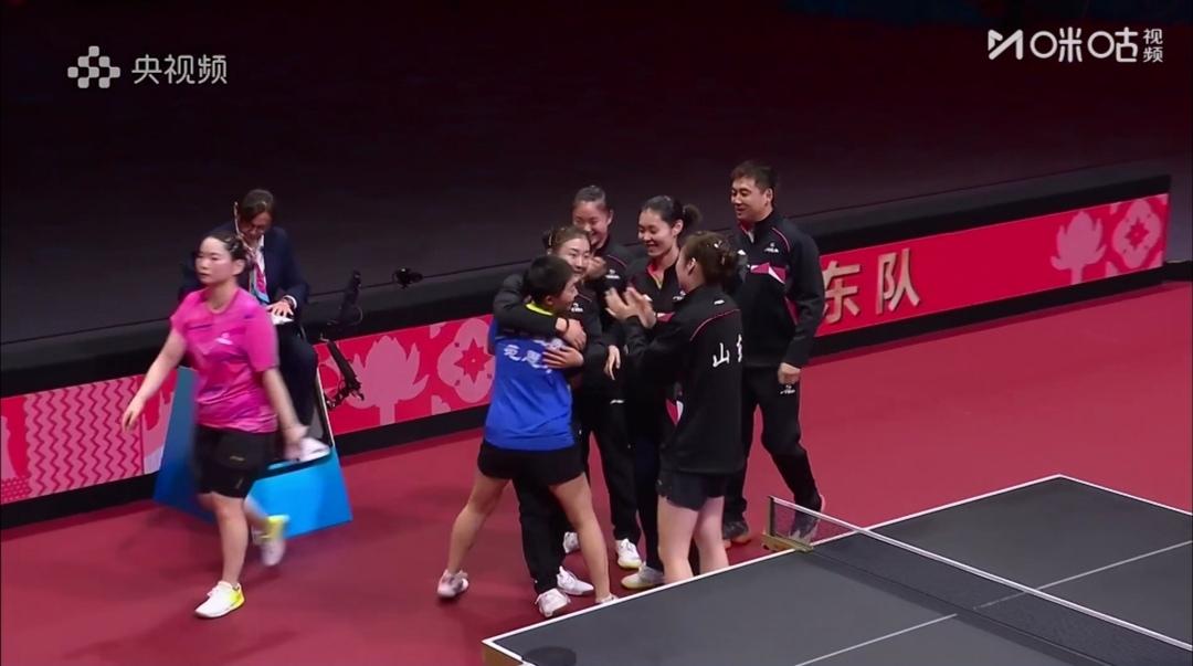 团结一心,顽强拼搏,永不言弃,山东乒乓球女团夺冠名至实归! 全运会乒乓球成年组女子团体赛决赛完美收官! 奥运双冠、全运会单打铜牌得主、陈梦领衔的山东队夺得女团冠军! 单打世界排名第一、世界冠军、全运会单打亚军、孙颖莎领衔的河北队夺得女团亚军! 公布双方排兵布阵主客队选手出场顺序时,我就认定了冠军归属于山东队! 2025-11-18 23:05 2025-11-19 01:08 2025-11-19 01:16 我连续发表了有关乒乓球山东队和陈梦的三个作品,可以佐证我的预测。 第一盘,山东陈梦/王晓彤客队双打率先登场,对阵主队何卓佳/王添艺,明显地双打这一分,山东队一定要拿下! 结果双打山东队3:0(11-8;11-7;11-5)胜河北队! 第三盘,三单陈梦对主队三单王添艺,又是一定会拿下! 结果大梦又是3:0(11-8;11-7;11-6)获胜! 山东女团这就有两分了! 山东女团有自知之明,第二盘、第四盘肯定是河北女团“小魔王”孙颖莎的,但只能🈳砍两分! 盘分2:2平,这样山东女团可以与河北女团平起平坐,可以与河北队掰手腕了! 决胜盘想到范思琦会胜,但没想到让2追3、超级大逆转、能逆风翻盘,3:2(6-11;4-11;11-6;11-7;11-6)险胜河北女团何卓佳。 当然过程戏剧性,特别是决胜盘决胜局,范思琦更经受千锤百炼,顽强拼搏极致。 山东队这场胜利来之不易! 在一边倒地为河北队孙颖莎、何卓佳加油声中完成✅的! 感谢范思琦,何卓佳奉献了精彩绝伦的比赛! 十分感谢河北乒乓球女队! 十分感谢山东乒乓球女队! 奉献了精彩纷呈的团体赛比赛!