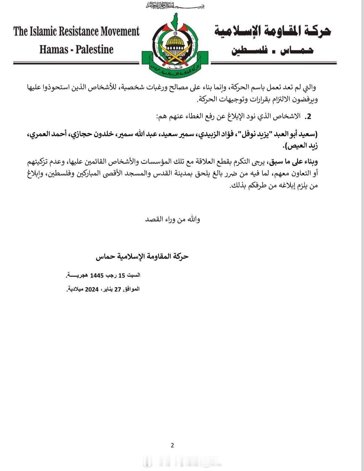 最近巴勒斯坦“哈马斯”运动在2024年发布的两条关于澄清某些穆兄会派系利用为加沙地区的人道主义捐款的名义大量诈骗民众钱财的情况被重新炒作起来,具体原因不明,似乎是干这件事的那帮人内部分赃不均,然后有人自爆了。